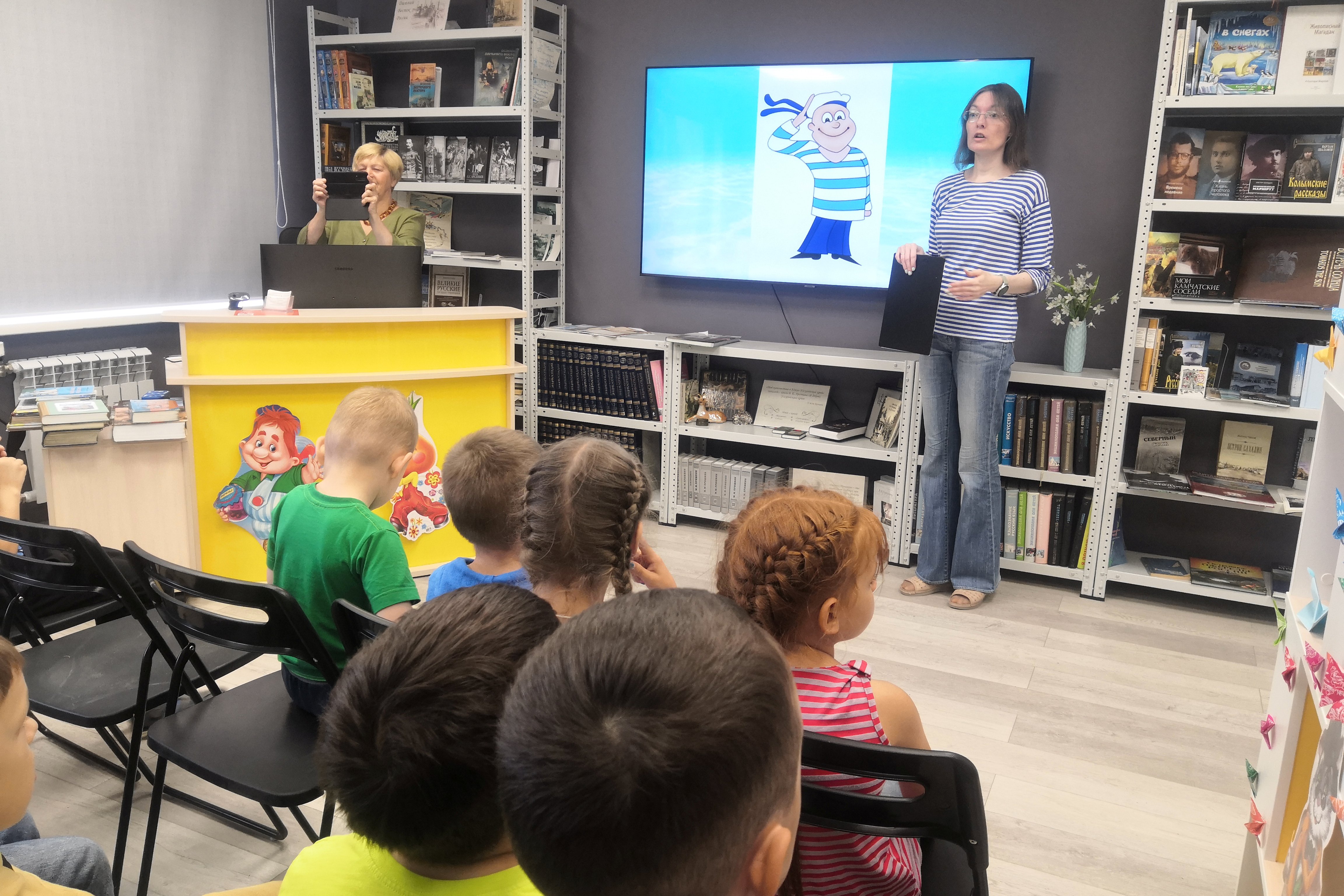 В библиотека №21 воспитанники детского сада №140 узнали историю возникновения флота в России. С интересом слушали историю легендарного крейсера «Варяг», узнали про мемориал на Морском кладбище погибшим морякам.