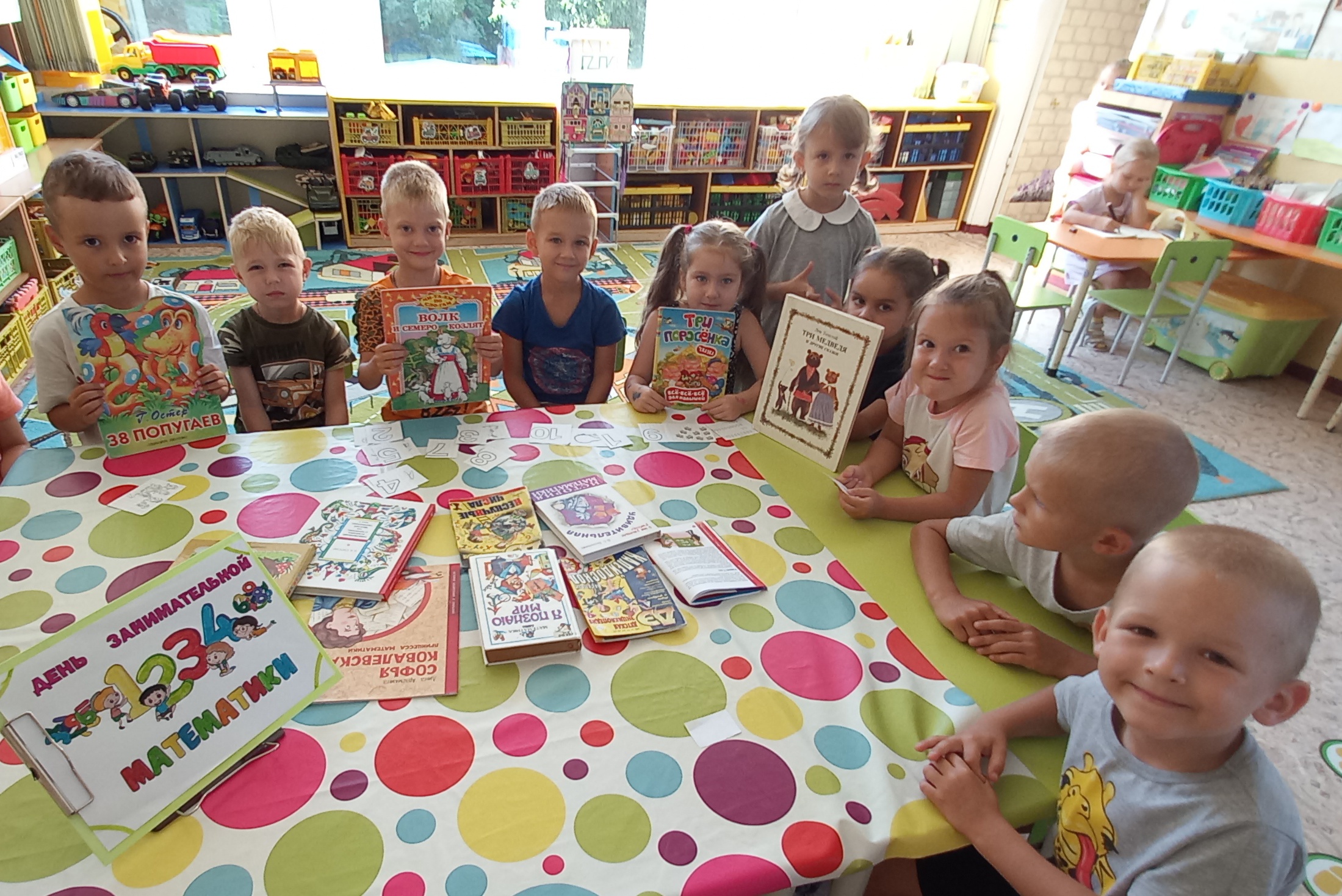Для ребят подготовили множество интересных заданий и игр, которые помогли детям узнать больше о числах и формулах, думать и креативно мыслить. Занятие началось с разминки, юным математикам нужно было решить стихотворные задачки-загадки из книги Владимира Степанова «Азбука — угадайка», затем ребята вспомнили с помощью стихов русские сказки, в названии которых есть число, такие как «Три медведя», «Три поросёнка», «Волк и семеро козлят».