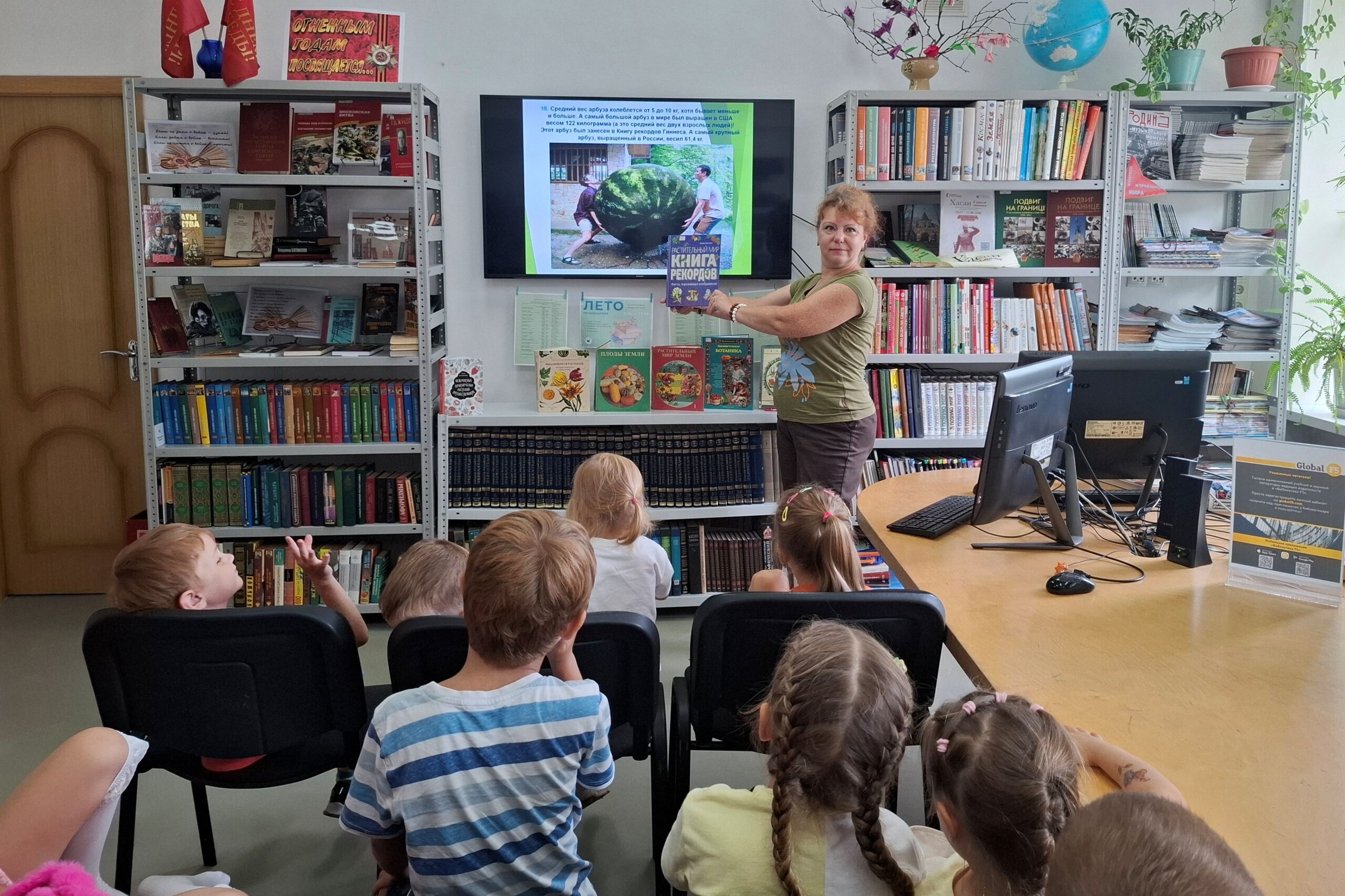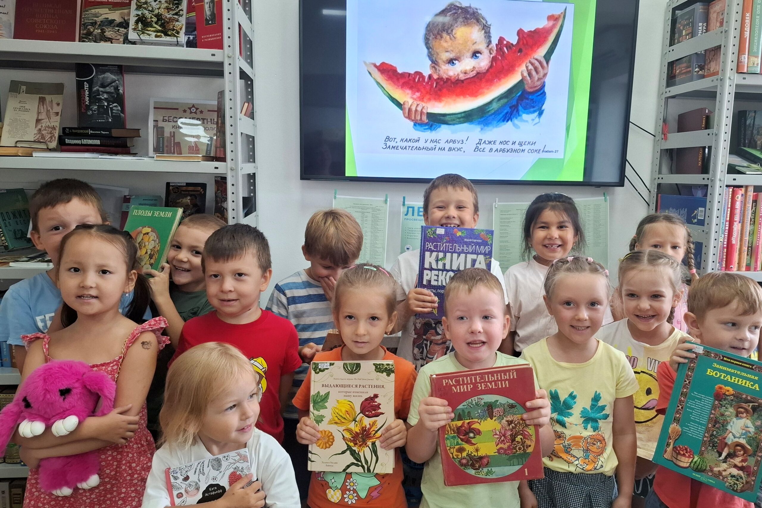 Библиотека № 16 (ул. Котельникова, 20) организовала для воспитанников ДОУ № 175 познавательный час к Международному дню арбуза. Дети узнали о том, как арбуз стал любимой ягодой, как он распространялся по миру, как пришел в Россию, чем он полезен и какие кулинарные вкусные блюда можно из него приготовить, услышали малоизвестные тайны и интересные факты про арбуз, узнали о памятниках арбузу. Сотрудники библиотеки 16 познакомили ребят с художественными произведениями, где один из героев – арбуз, это стихи Анастасии Орловой, Юнны Мориц, Владимира Ланина, рассказ Бориса Житкова «Арбузы» из сборника «Что я видел».