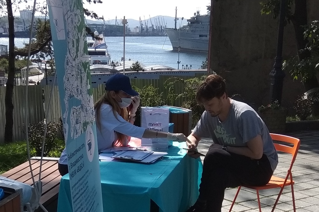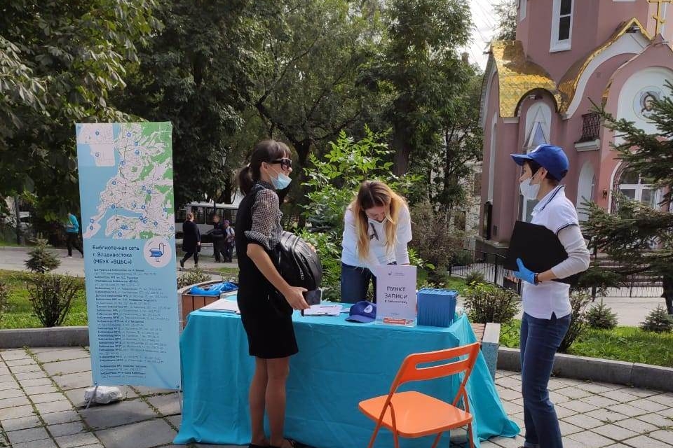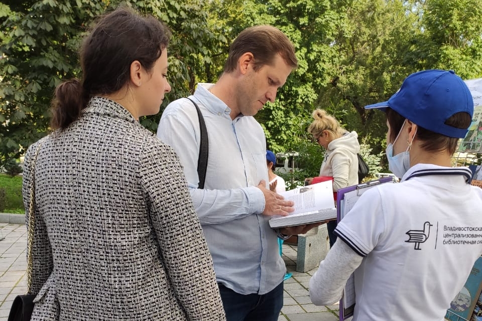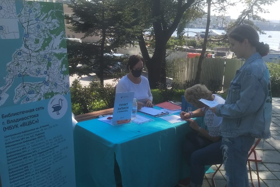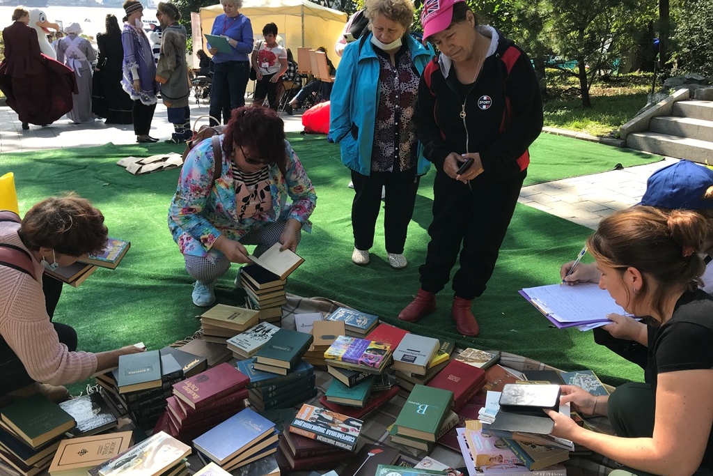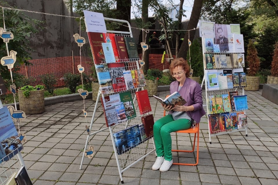 Сотни горожан и гостей города Владивостока посетили площадку рядом с памятником Илье Муромцу, где разместились стеллажи с книгами из краеведческого фонда библиотечной системы Владивостока.