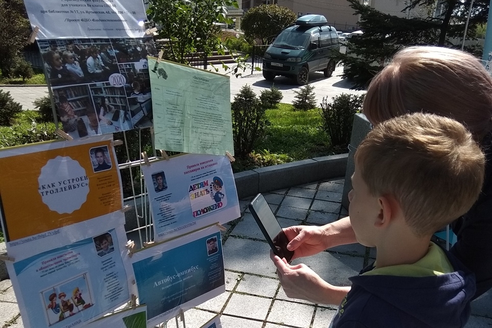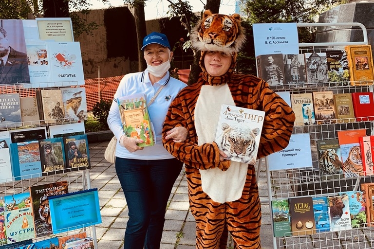 На открытой солнечной площадке все желающие могли получить информацию о библиотеках, познакомиться с книжными коллекциями и записаться в библиотеку. Здесь разместились передвижные книжные инсталляции по нескольким разделам: «Историческое владивостоковедение», «Литературный Владивосток», «Природный мир Приморья», «Книги приморских издательств», была представлена литература об истории краевой столицы, о памятных местах города, коллекция книг о Николае Муравьеве-Амурском, книги, посвященные 150-летию Владимира Арсеньева и книгам приморского автора Ивана Басаргина.