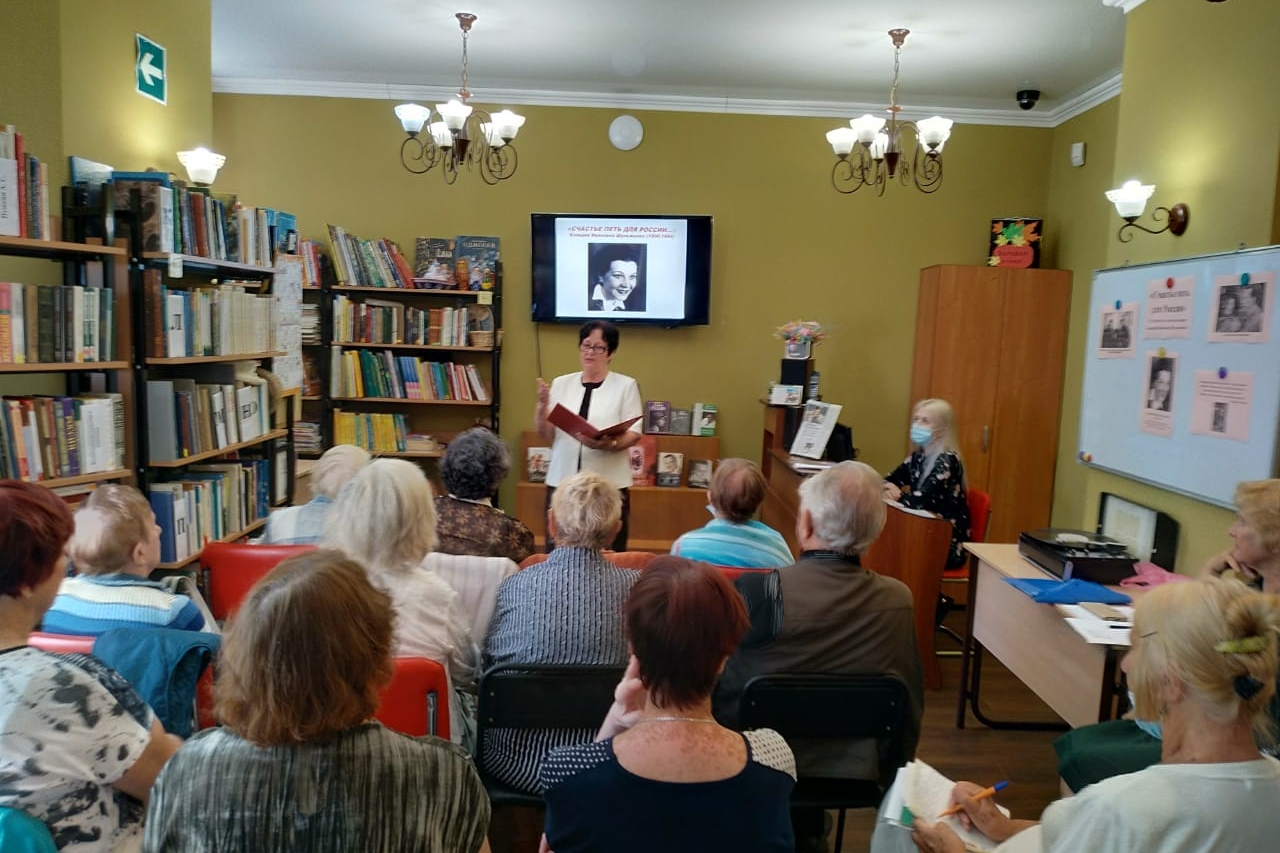 Члены клубного объединения «В мире прекрасного» собрались 22 сентября в библиотеке № 4 на мероприятие «Счастье петь для России», посвященное 115-летию со дня рождения К.И. Шульженко. Судьба артиста всегда вызывает интерес. Судьба же такой эстрадной актрисы, какой является К. Шульженко, интересна вдвойне: ведь ее творческий путь – это борьба за свое искусство, утверждение человеческих идеалов, это и вечное творческое волнение. Она знает, о чем хочет говорить со слушателем, знает и то, каким должен быть этот разговор. В содружестве «композитор – поэт — исполнитель» она всегда равноправный соавтор. Это и делает ее песни непохожими на песни других исполнителей.