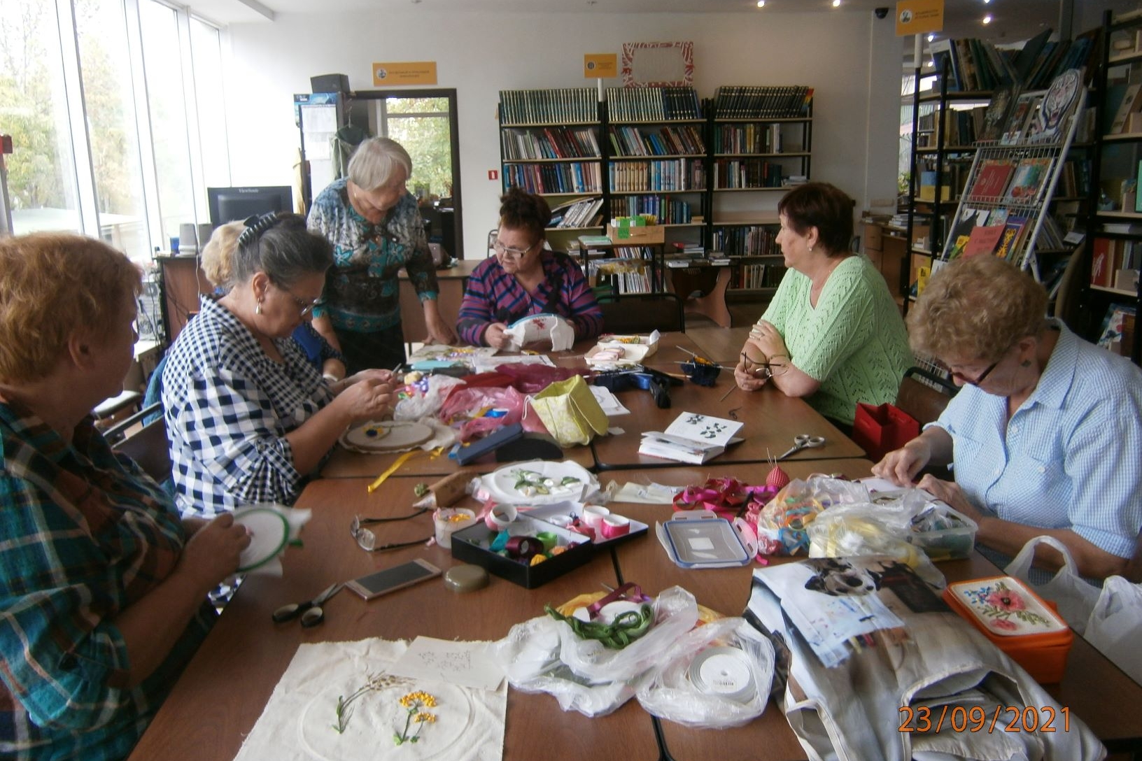 23 сентября в библиотеке № 3 в очередной раз проходила встреча творческой мастерской «Руками вышитое чудо». Такие занятия привлекают читателей старшего возраста. Вышивали лентами симпатичных незабудок, делились идеями, прикидывали возможные сочетания лент с цветовой гаммой. Решили, к новогодним праздникам сделать большую выставку своих работ.