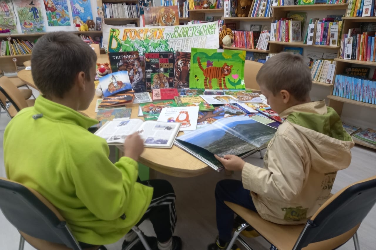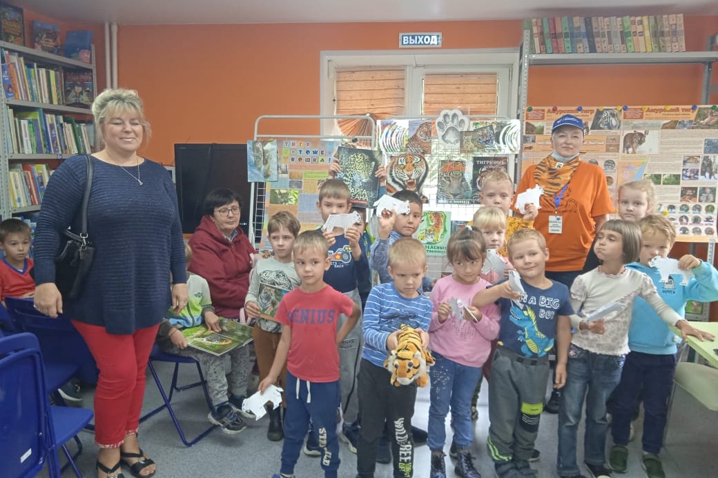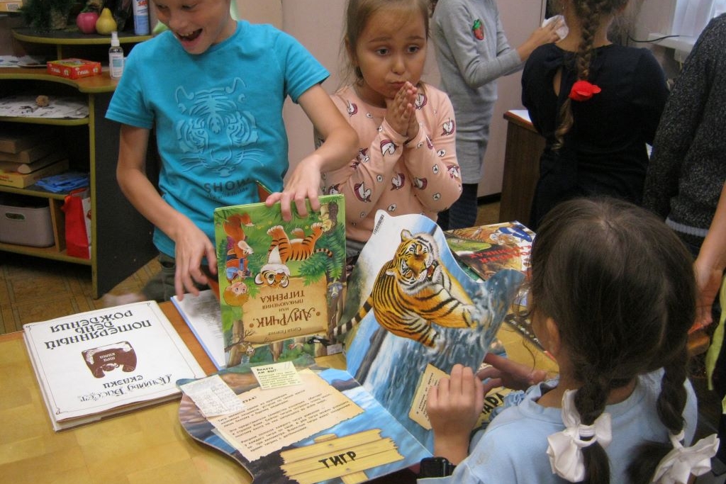 Занимательный краеведческий час «По тигриным тропам» организовала библиотека № 3 для воспитанников детского сада №33 и юных читателей. Дети рассмотрели тигриные следы в городе, разгадали тигриные загадки, вспомнили знакомых тигров из книжек и порычали по-тигриному. Полистали Красную книгу Приморья. Совершили виртуальное путешествие по Земле леопарда и узнали о новой, «Леопардовой», набережной в нашем городе. Дети готовились к встрече, принесли свои рисунки и с удовольствием фотографировались с рисунками, с тиграми, с книгами.