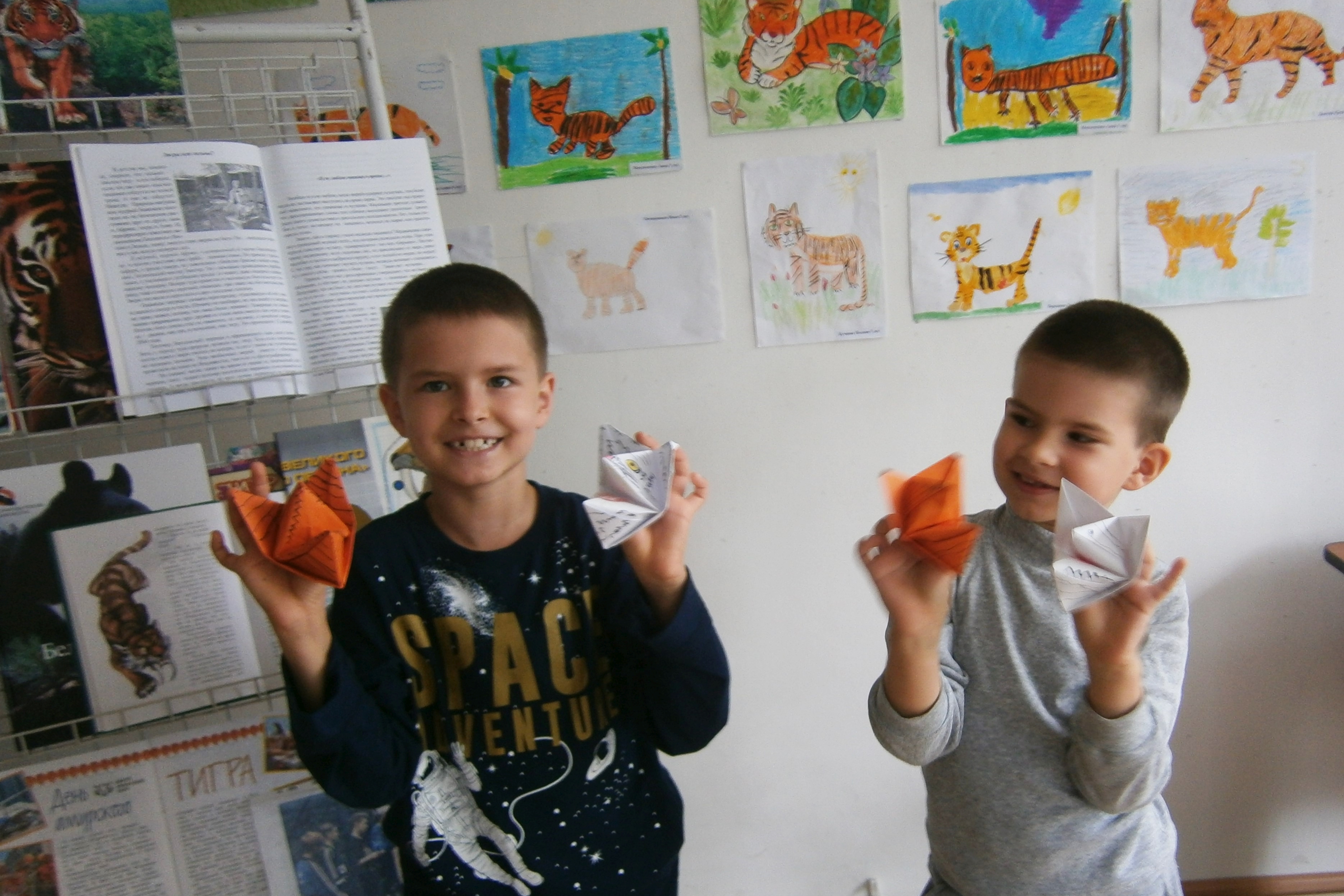 23 сентября в библиотеке № 20 прошел «тигриный» марафон. В течение дня юные читатели из детских клубов «Спутник» м «Орленок» ЦДТ Советского района, слушатели «Школы читателя» с удовольствием принимали участие в познавательном мероприятии. Ребята узнали, что есть такой праздник «День амурского тигра и дальневосточного леопарда» и отмечается он в 4-е воскресенье сентября. В зале детского абонемента развернулась панорамная книжно-иллюстративная выставка «Дикие кошки», благодаря дети узнали много интересного о больших полосатых кошках, посмотрели видеосюжеты о тиграх и тигрятах, мультфильм «Тигренок на подсолнухе» и даже услышали настоящий тигриный рык. А завершился наш марафон физкультминуткой «Тигр крадется» и изготовлением поделки «Амурский тигр». Такие занятия по экологическому краеведению очень важны в воспитании подрастающего поколения, ребята расширяют свой кругозор, знакомятся с природой, с прошлым и настоящим родного города и края.