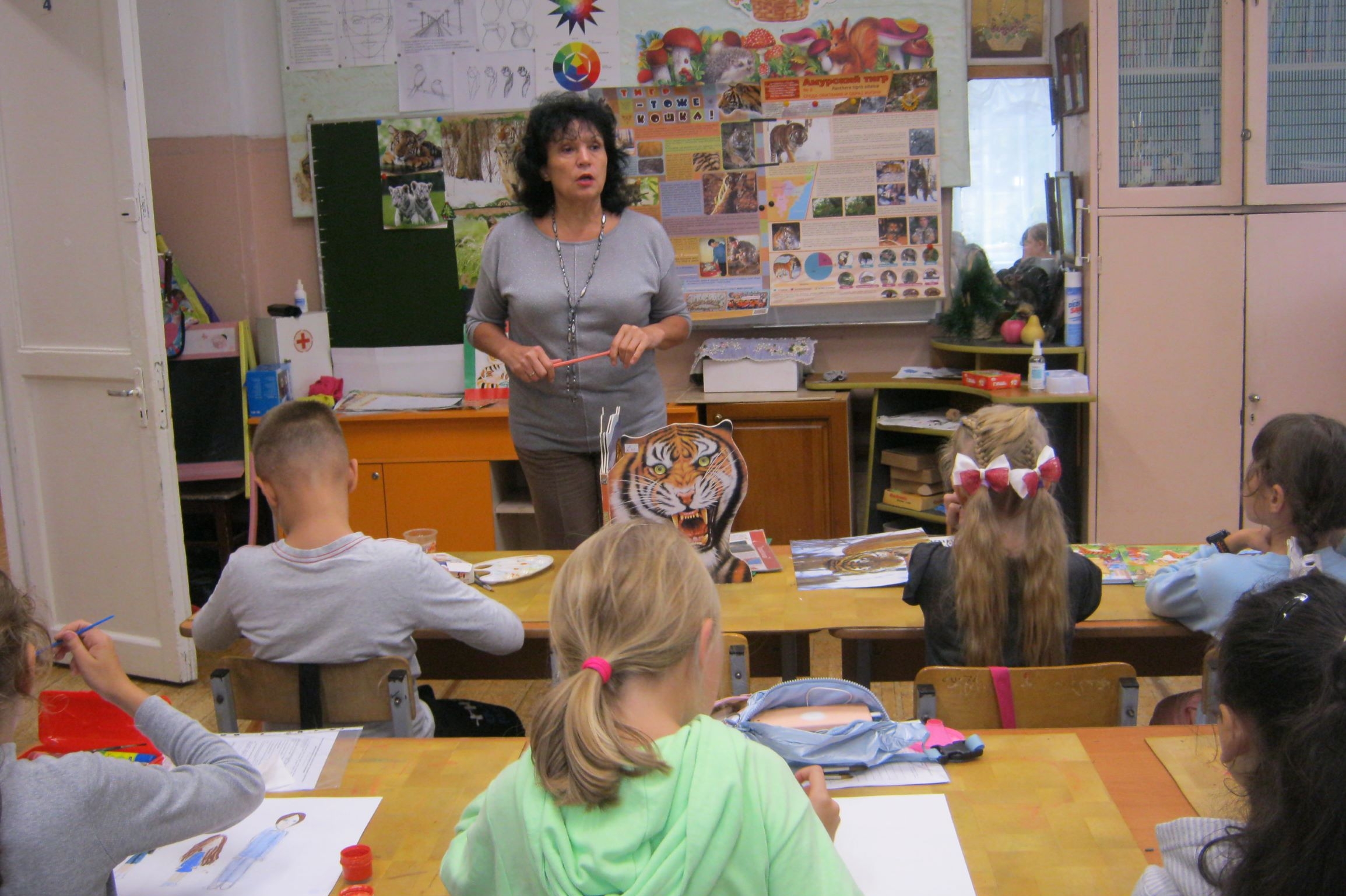 С самого начала стало понятно, что дети знают о тигре многое: и какой окрас, и как это помогает ему в природе, и что он ест, и почему он хищник. А вот размеры тигра, его необычайная ловкость: он может запрыгнуть на вертикальную стену свыше 2-х метров, прыгнуть в длину на девять метров, острые клыки, способность переносить на спине тяжелые туши убитых им животных – удивили всех ребят. Удивили когти длиной 10 см и способность быстро бегать: до 50 км в час, хоть и на короткие расстояния, отлично плавает и не боится морозов. Очень много удивительного в этом грациозном красивом хищнике.