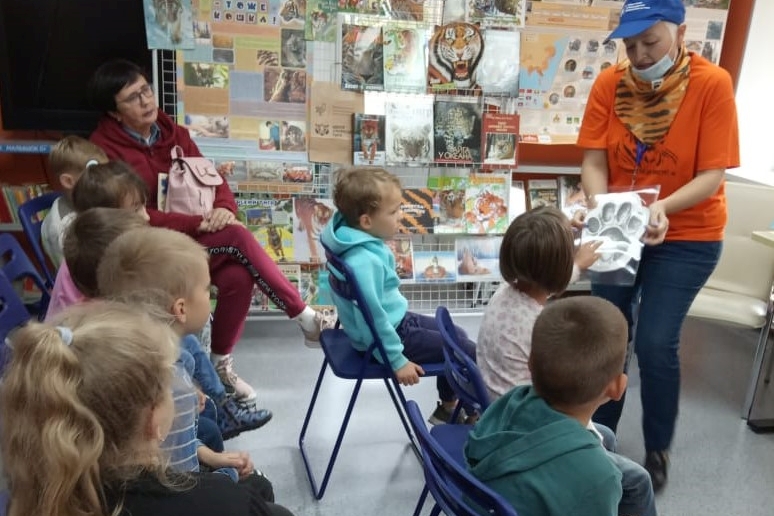 Занимательный краеведческий час «По тигриным тропам» организовала библиотека № 3 для воспитанников детского сада №33 и юных читателей. Дети рассмотрели тигриные следы в городе, разгадали тигриные загадки, вспомнили знакомых тигров из книжек и порычали по-тигриному. Полистали Красную книгу Приморья. Совершили виртуальное путешествие по Земле леопарда и узнали о новой, «Леопардовой», набережной в нашем городе. Дети готовились к встрече, принесли свои рисунки и с удовольствием фотографировались с рисунками, с тиграми, с книгами.