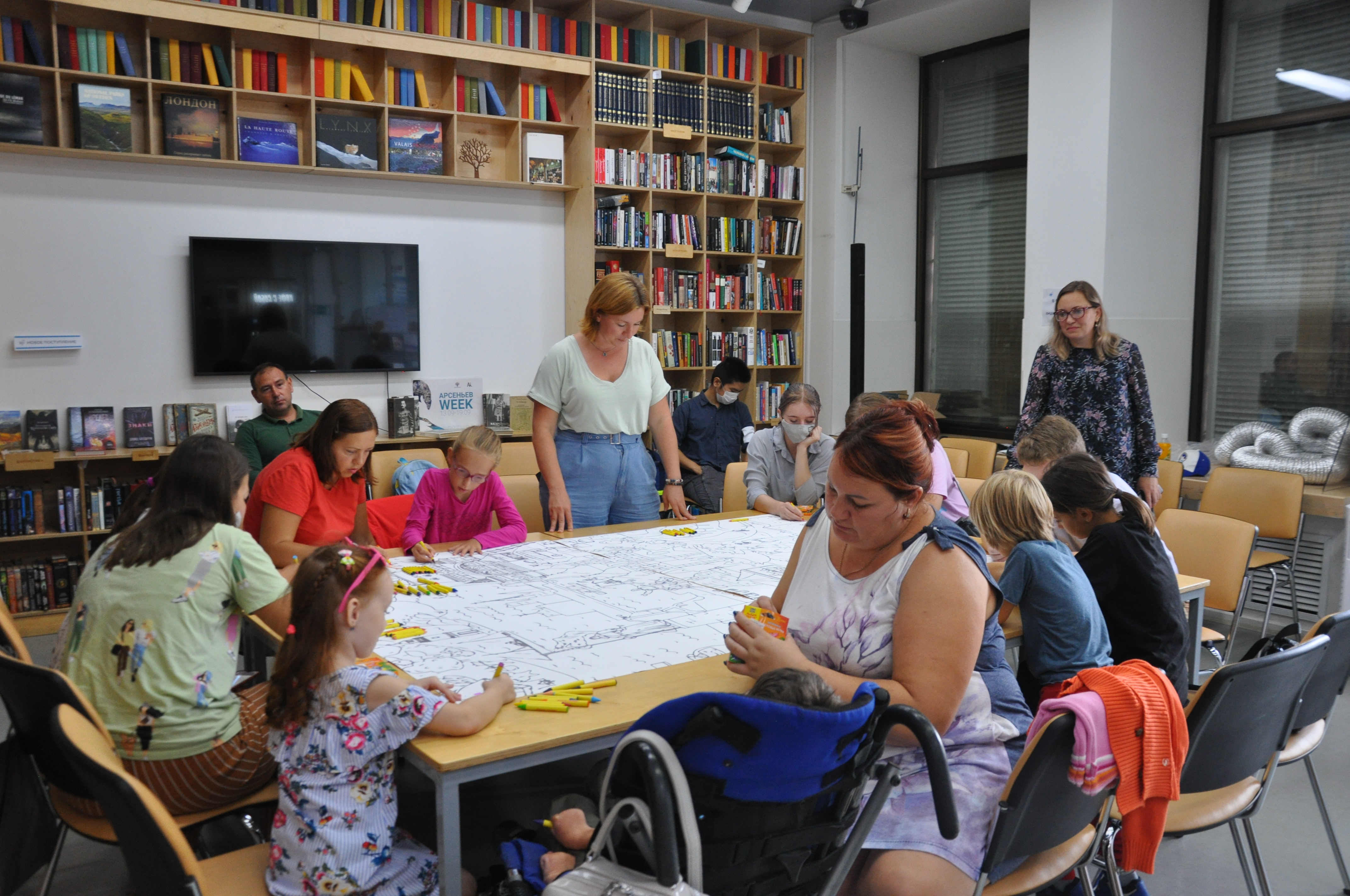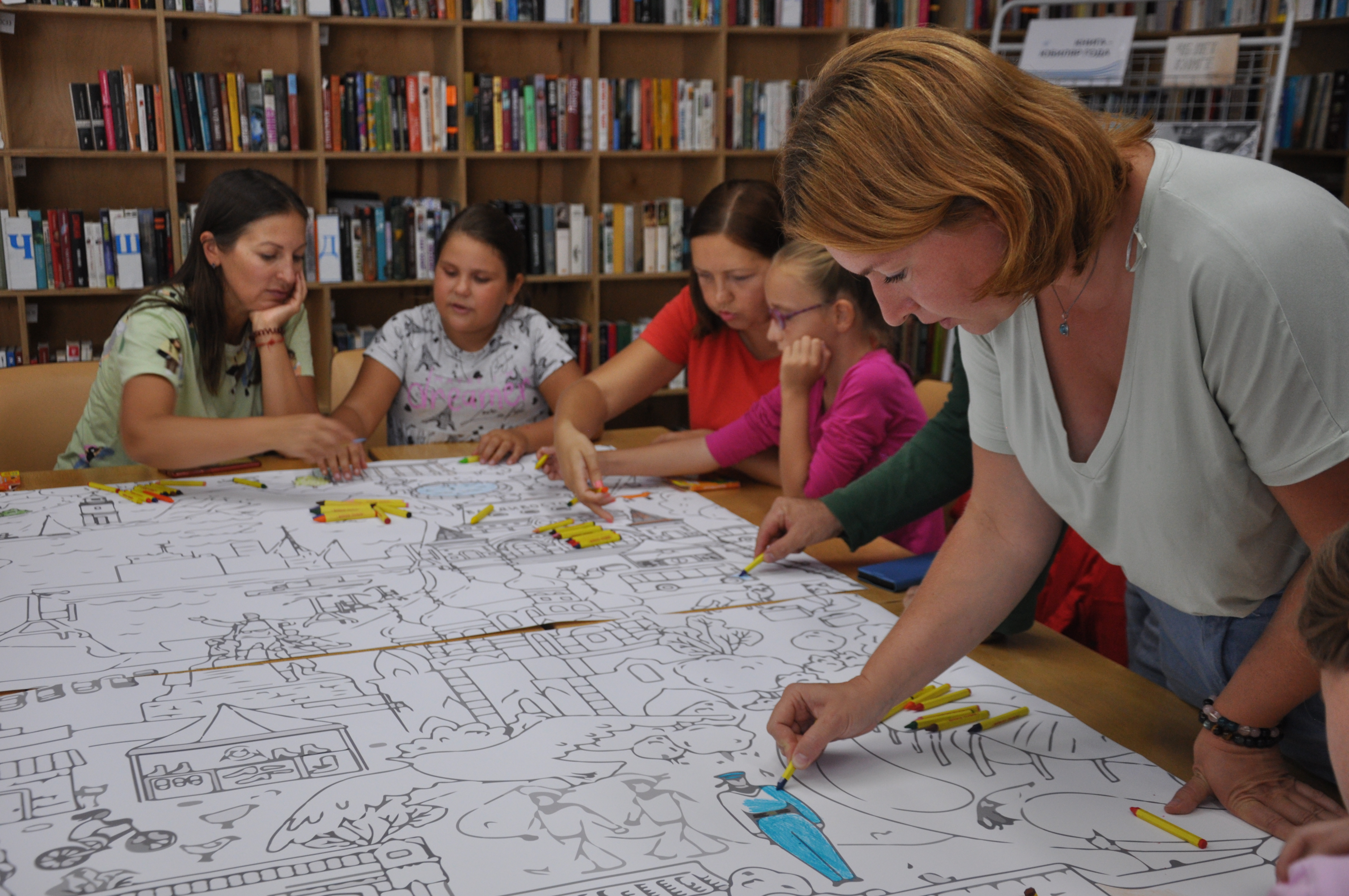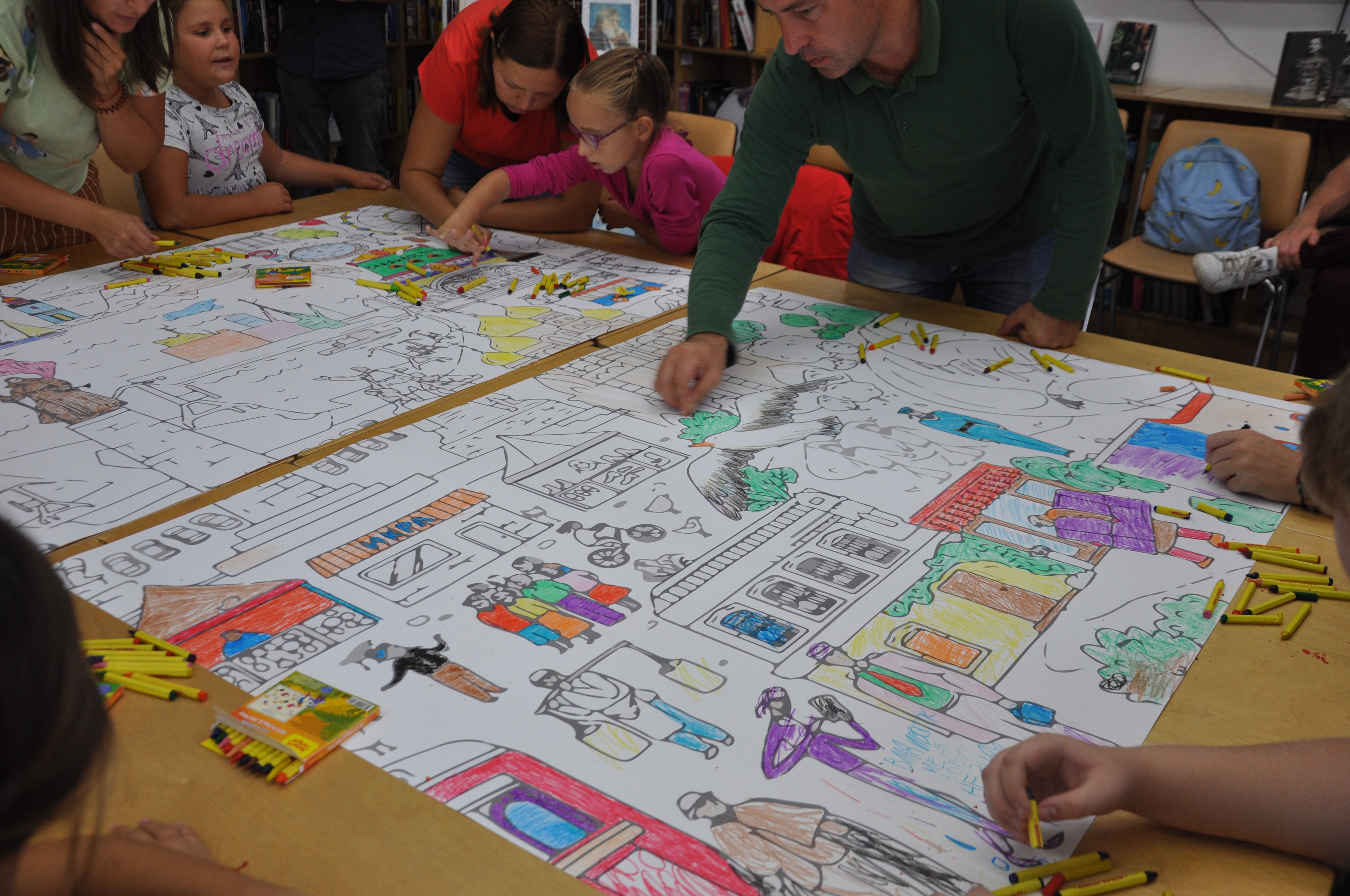 22 сентября в библиотеке «БУК» ребята в возрасте 5–12 лет масляными мелками раскрасили большую картину, посвящённую Владивостоку и отражающую узнаваемые элементы города: железнодорожный вокзал, старинные дома, памятник Борцам за власть Советов, храм и т.д., — а также схематичные образы горожан прошлого и настоящего. Каждому из гостей достался отдельный фрагмент картины.