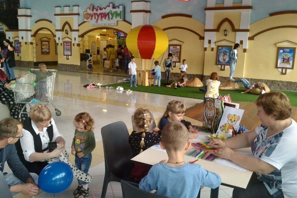Другие посетители торгово-развлекательного центра, видя оживление на площадке, тоже спешили сюда. И не зря: здесь можно было поиграть в игру «Поймай хвост тигра», рисовать тигра и его друзей на шарах, делать поделки в технике оригами, раскрашивать. Наиболее смелые дети приняли участие в игре с вопросами на следах тигра «Тигриной тропой».