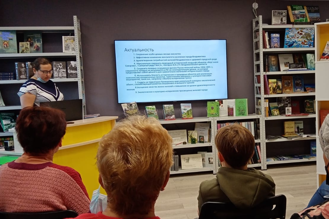 Презентация проекта «Дендропарк им. Арсеньева» прошла 22 октября в библиотеке №21 Проект представила член инициативной группы жителей района Нейбута по созданию дендропарка им. Арсеньева — Колупаева Татьяна Олеговна. Люди разных профессий и сфер деятельности, которые любят свой район, свой город, создали этот проект для того, чтобы не только сохранить его историю, создать комфортную городскую среду в районе Нейбута, но и привлечь внимание властей и жителей города к сохранению уникальности и целостности территории, не дать застроить её новыми многоэтажками.