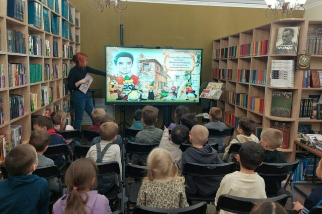 22 октября в библиотеке № 4 (ул. Светланская, 205) прошел познавательный час «Сказочные фантазии» для дошкольников ДОУ № 145. Дети познакомились с жизнью писателя, его творчеством и даже посмотрели фрагмент диафильма «Сказки по телефону», где Синьор Бьянки рассказывал своей дочери на ночь сказки. Ребята очень воодушевились, когда речь зашла о Чиполлино, многие из них знакомы со сказкой, благодаря одноименному советскому мультфильму. Так же все с интересом наблюдали фрагмент диафильма по сказке «Как дотронуться до носа короля».