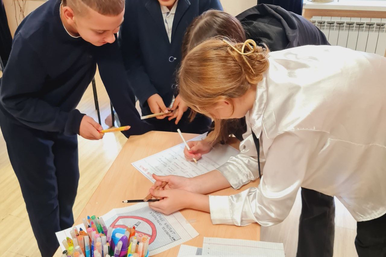 Дети делали рекламные плакаты «5 причин, чтобы бросить курить» и «5 причин, чтобы не начинать курить», поделившись на 2 команды. Дети трудились активно и с большим интересом, с задачей справились!