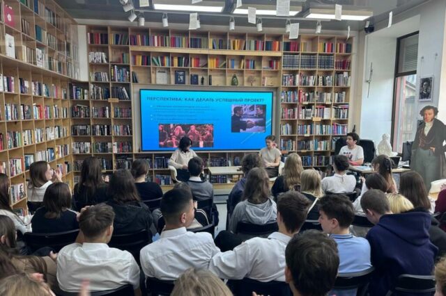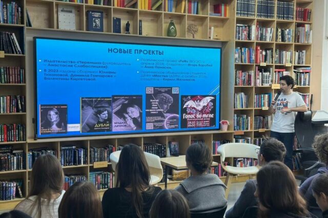 В библиотеке «БУК» (ул. Светланская, 55) для 48 учащихся и представителей школы № 46 и гимназии № 1 состоялась лекция «Литературные проекты Владивостока». Ребята с большим интересом погрузились в богатую литературную историю города и узнали о современных площадках, где можно послушать талантливых авторов и самим выступить со своими произведениями. Вдохновившись услышанным, ученицы гимназии № 1 Эвелина Дзюба, Марина Минко и Анастасия Симонова сразу же поделились с аудиторией собственными стихотворениями.