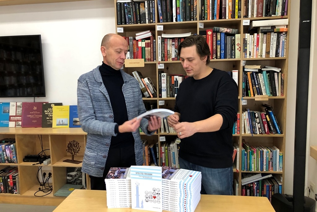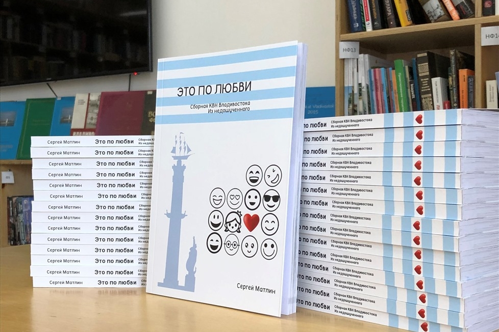 26 декабря в молодежной библиотеке «БУК» состоялась церемония передачи в дар муниципальным библиотекам города книги, посвящённой самой известной в истории Дальнего Востока команде КВН. Основатель движения КВН в Приморье, бывший директор Сборной Владивостока Сергей Матлин передал представителю Владивостокской централизованной библиотечной системы Василию Чубу несколько десятков экземпляров книги «Это по любви. Сборная КВН Владивостока: из недошученного», изданной совсем недавно Бюро творческих находок Владивостока.