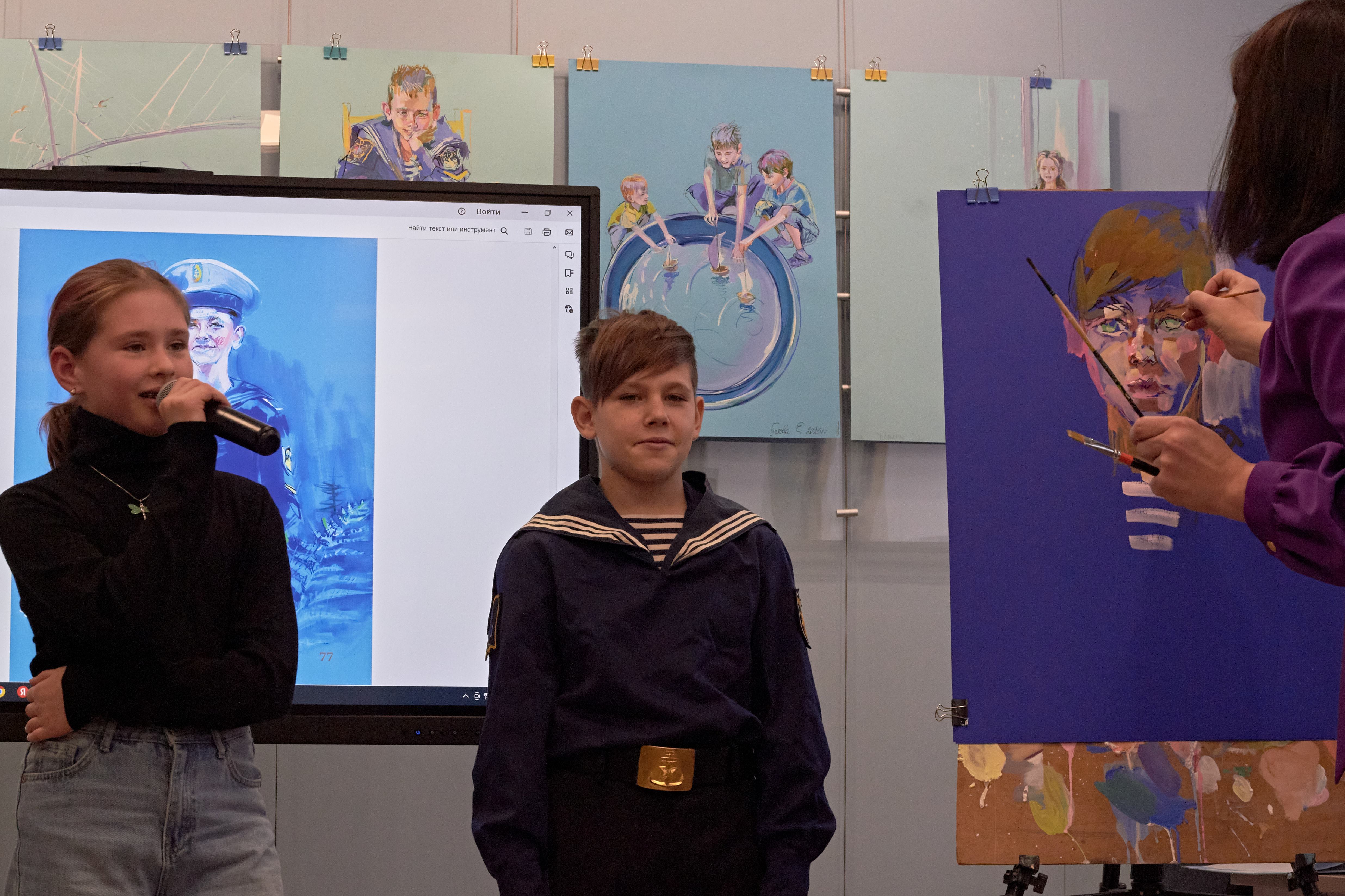 Елена Гуляева, яркая и самобытная художница, рассказала о том, как создавалась книга, первая версия которой была представлена 10 лет назад. Но сейчас, обновленная и дополненная в новом формате, она обрела реальных персонажей. Сначала юнга детской флотилии «Варяг» Дима Кривцов смело шагнул на её красочные страницы, за ним его младшие братья Захар, Влад, а после и родители Екатерина и Алексей.