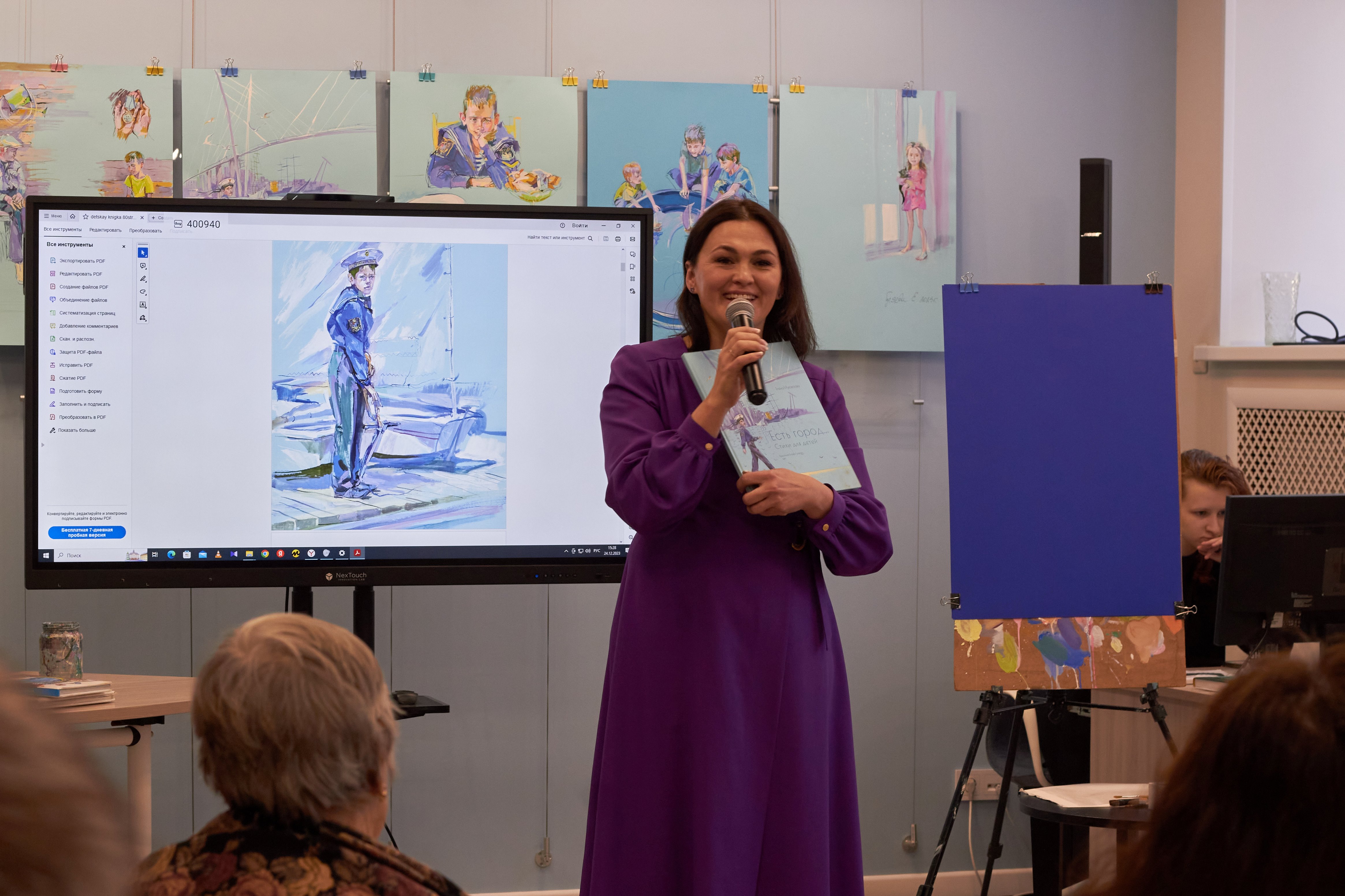 На презентации Елена Александровна Муковозова с любовью и вдохновением читала свои стихотворения, в то время как Елена создавала живой портрет юнги. Зрители долго не хотели расставаться с создателями книги, делились своими впечатлениями и наблюдали за завершением портрета.