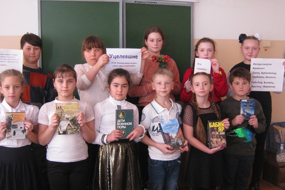 Для учащихся 3 «В» класса школы №54 библиотека №15 организовала патриотический час, где главными обвинителями фашистского Холокоста являются книги, написанные людьми, уцелевшими в немецких лагерях, замерзающих городах, выживших в украинском геноциде.