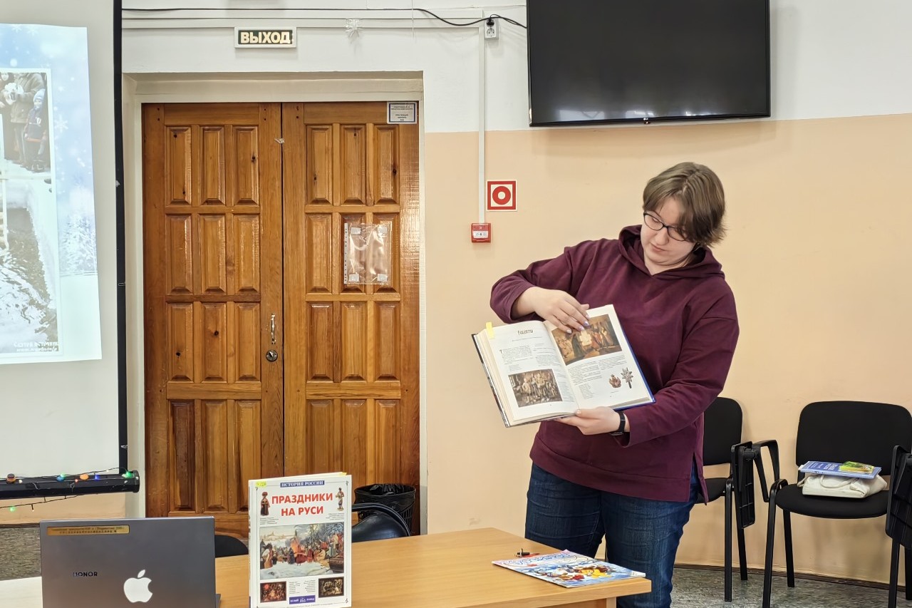 Аудитория очень активно слушала рассказ о праздниках, в Рождестве особенно их заинтересовали способы гадания на замужество, в старом Новом годе – чем его отмечание отличается от основного Нового года, а в Крещение – не болеют ли люди после окунания в ледяную воду. С интересом рассмотрели библиотечные книги: красочное издание историй православных «Я встречаю праздник» Анны Сапрыкиной, а также сборник, построенный по принципу православного календаря «Русская семья. Праздники и традиции».