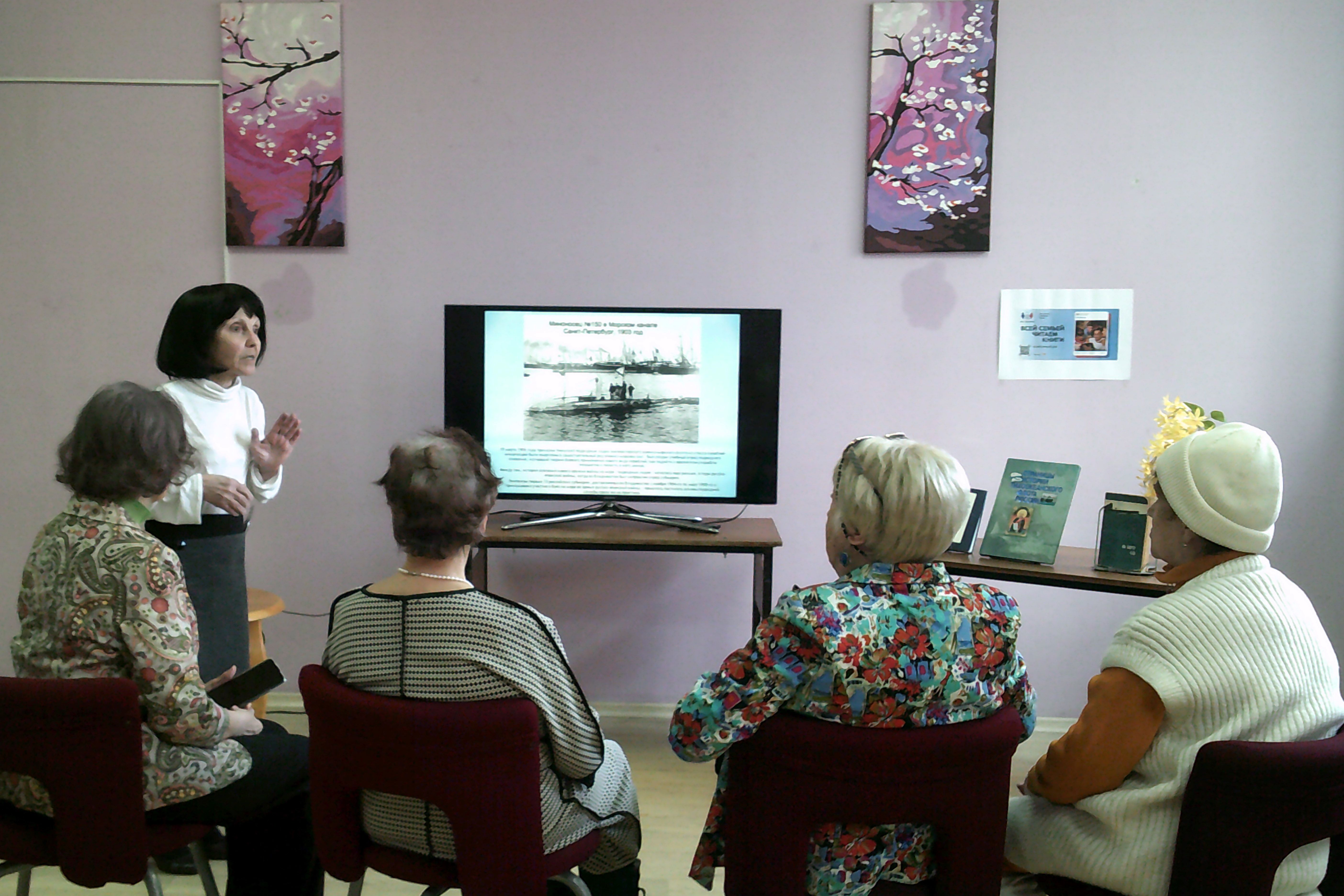 20 марта в библиотеке № 13, в рамках программы «Беспокойные сердца», состоялся исторический экскурс «Рождение подводного флота России», приуроченный к Дню моряка-подводника России. Ветераны педагогического труда Советского района просмотрели презентацию, рассказывающую о этом эпизоде истории нашего края, созданную на основе книг Геннадия Петровича Турмова «Владивосток» и научно-популярного очерка «Страницы истории Тихоокеанского флота России». Особенный интерес вызвала судьба одного из первых подводников России – Михаила Петровича Сюткина, который служил на самой первой российской подлодке «Дельфин», а после демобилизации работал на Дальзаводе сварщиком в минной мастерской. Захоронен на Морском кладбище Владивостока, недалеко от братской могилы нижних чинов крейсера «Варяг».