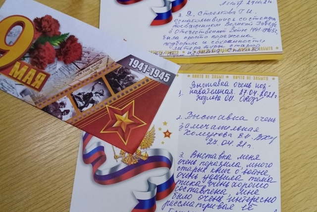 Читатели интересовались выставкой, слушали рассказ и делились своими впечатлениями о выставке, писали отзывы. От каждого из нас зависит не только настоящее, но и далекое будущее. Всего лишь надо – наполнить свое сердце добротой и увидеть в окружающих не потенциальных врагов, а таких же, как и мы людей – с дорогими сердцу семьями, с мечтой о счастье. Помня о великих жертвах и подвигах предков, мы должны бережно хранить их щедрый дар – жизнь без войны. Так пусть же небо над нашими головами всегда будет мирным!