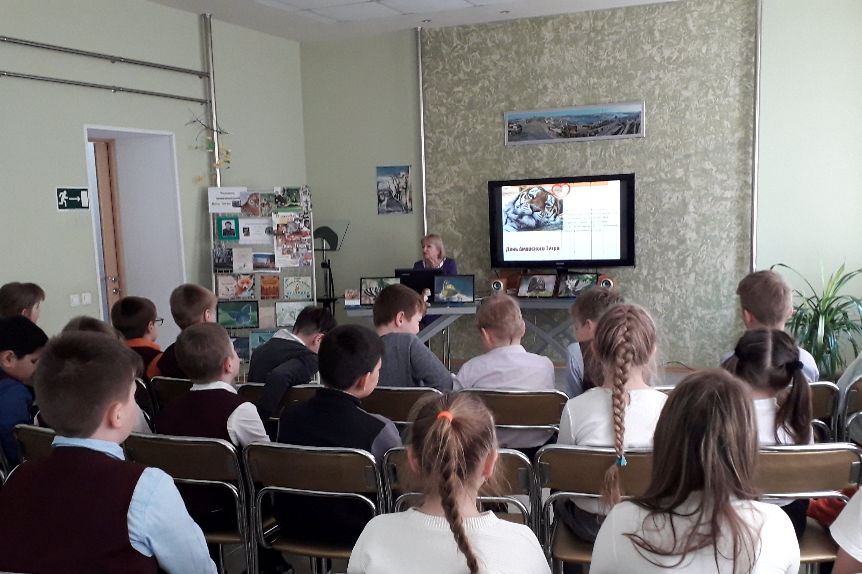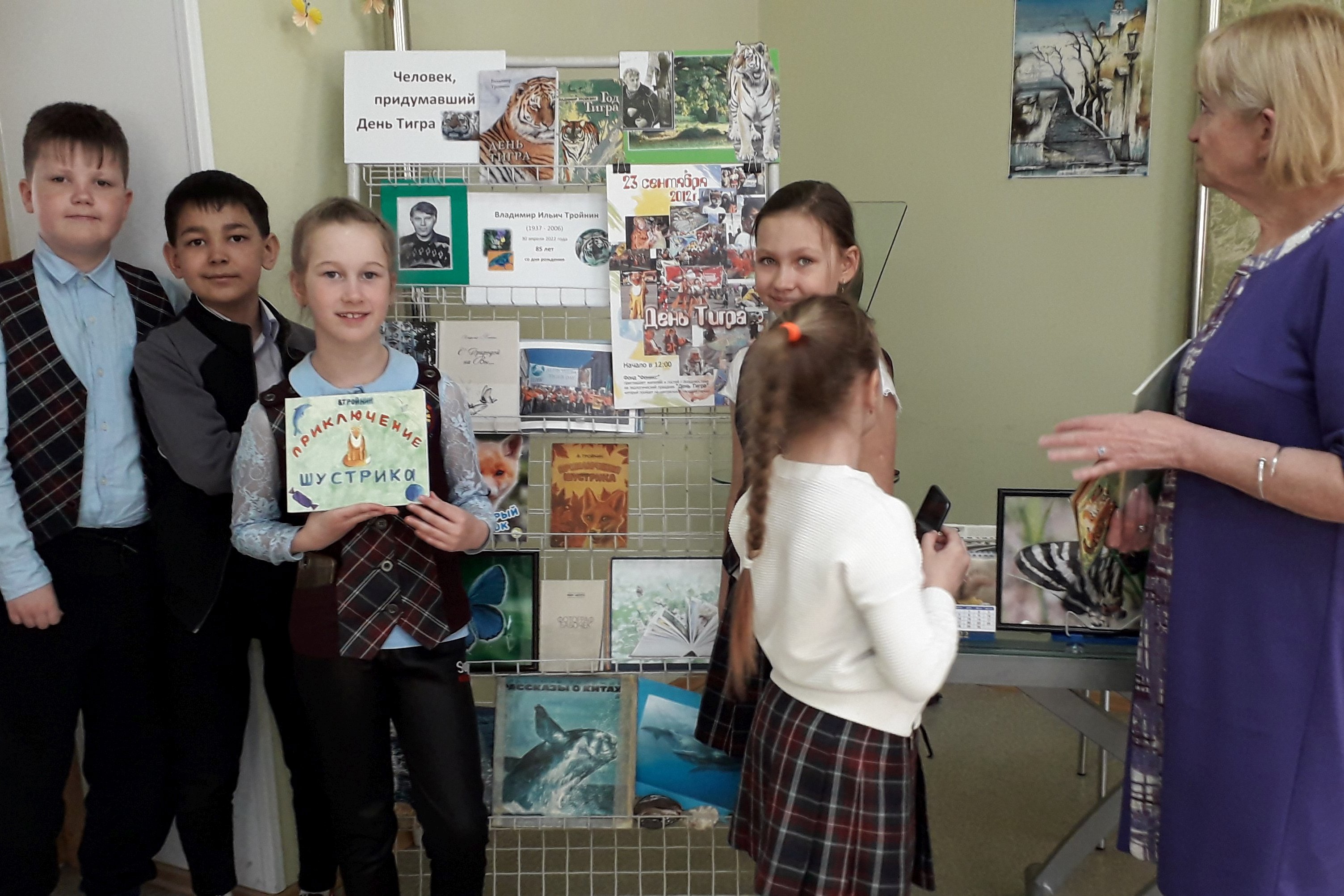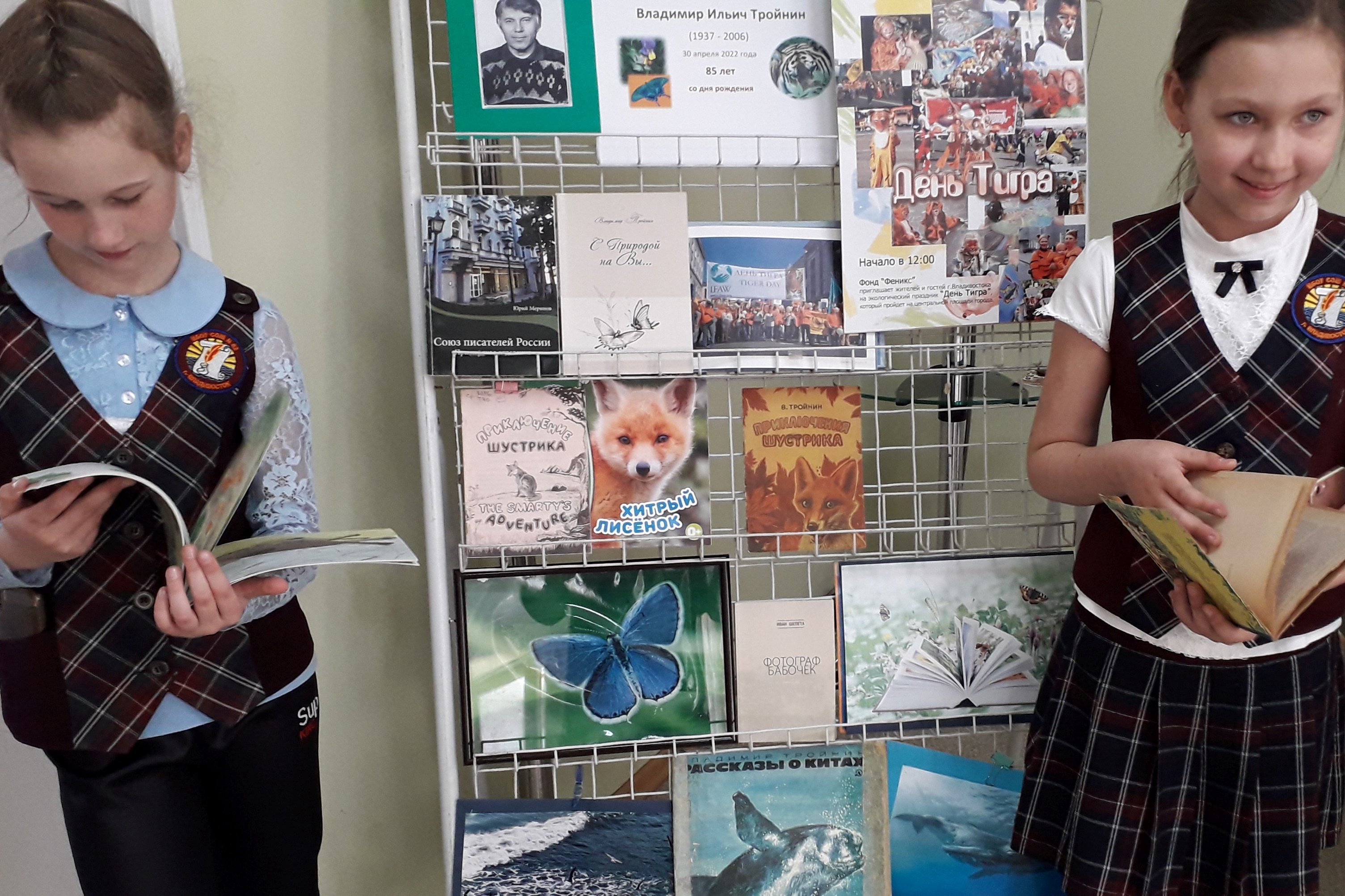 В библиотеке имени Н. Н. Муравьева-Амурского 27 апреля прошло мероприятие «Он знал, что людям красота – нужна!..», в ходе которого был воссоздан портрет писателя В. И. Тройнина (1937-2006). Ему в последний день текущего месяца исполнилось бы 85 лет. Красочная презентация «Человек, придумавший День тигра» наглядно и в доходчивой форме представила третьеклассникам основные вехи жизненного и творческого пути Владимира Ильича. Вспомнить о нем библиотека имени Н. Н. Муравьева-Амурского имеет особые основания: ее читальный зал послужил местом, где впервые был проведен День амурского тигра. Произошло это 21 марта 1995 года – самый первый тигриный праздник проводился на базе существовавшего в библиотеке (тогда Центральной детской библиотеке) экологического центра «Мандаринка».