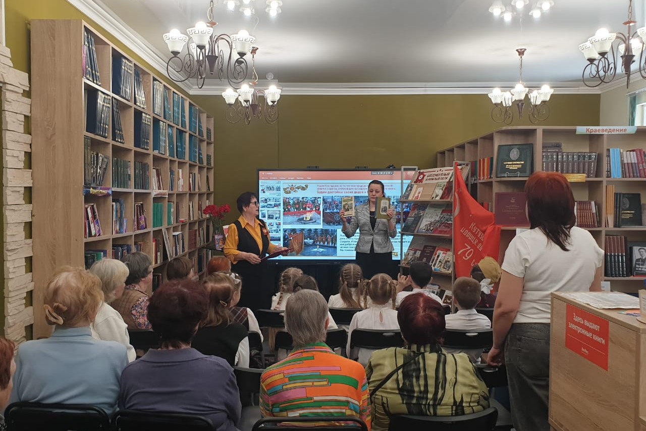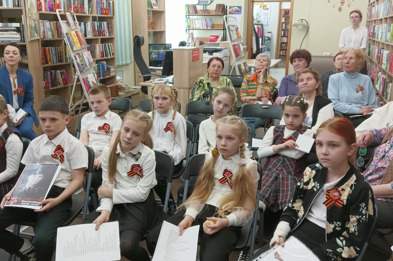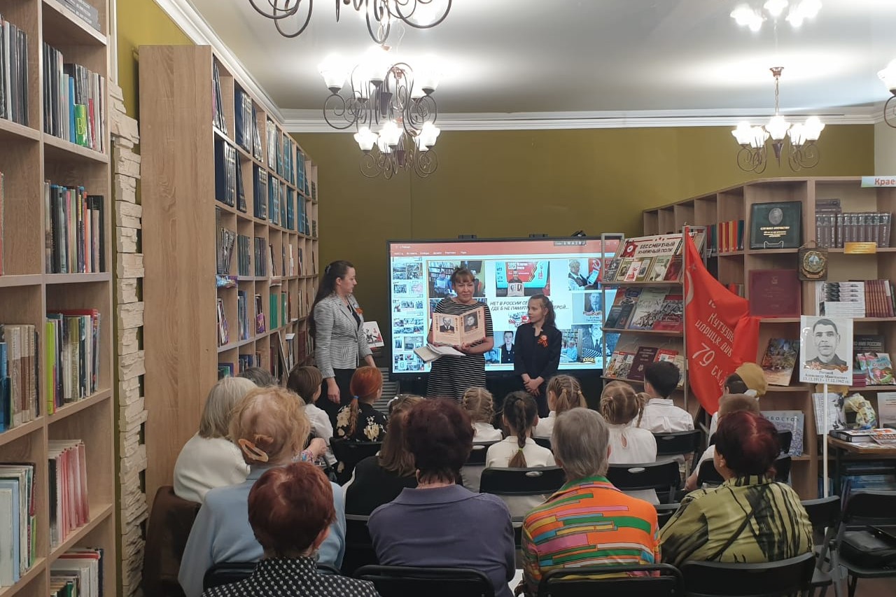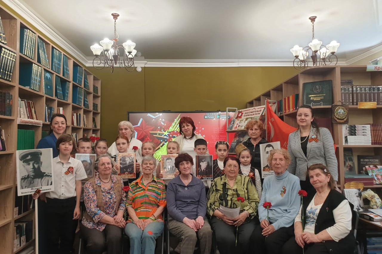 В библиотеке встретились участники клубного объединения «В мире прекрасного» — представители старшего поколения и юные школьники, учащиеся 2-3 классов «СОШ № 22», а также семьи с детьми. Встреча была волнительной и трогательной: дети принесли портреты героев своей семьи и рассказали о своих родственниках, воевавших на всех фронтах в годы Великой Отечественной, Второй Мировой, а также продекламировали стихи о подвигах солдат. Отрывок из знаменитой на весь мир поэмы Роберта Рождественского «Реквием» прозвучал со слезами на глазах. В одном небольшом зале встретились три поколения, те кто родился перед войной или в страшные военные годы (сегодня им за 80), родители учеников начальной школы и наши ребята, тем кому сегодня всего лишь 10-11 лет.