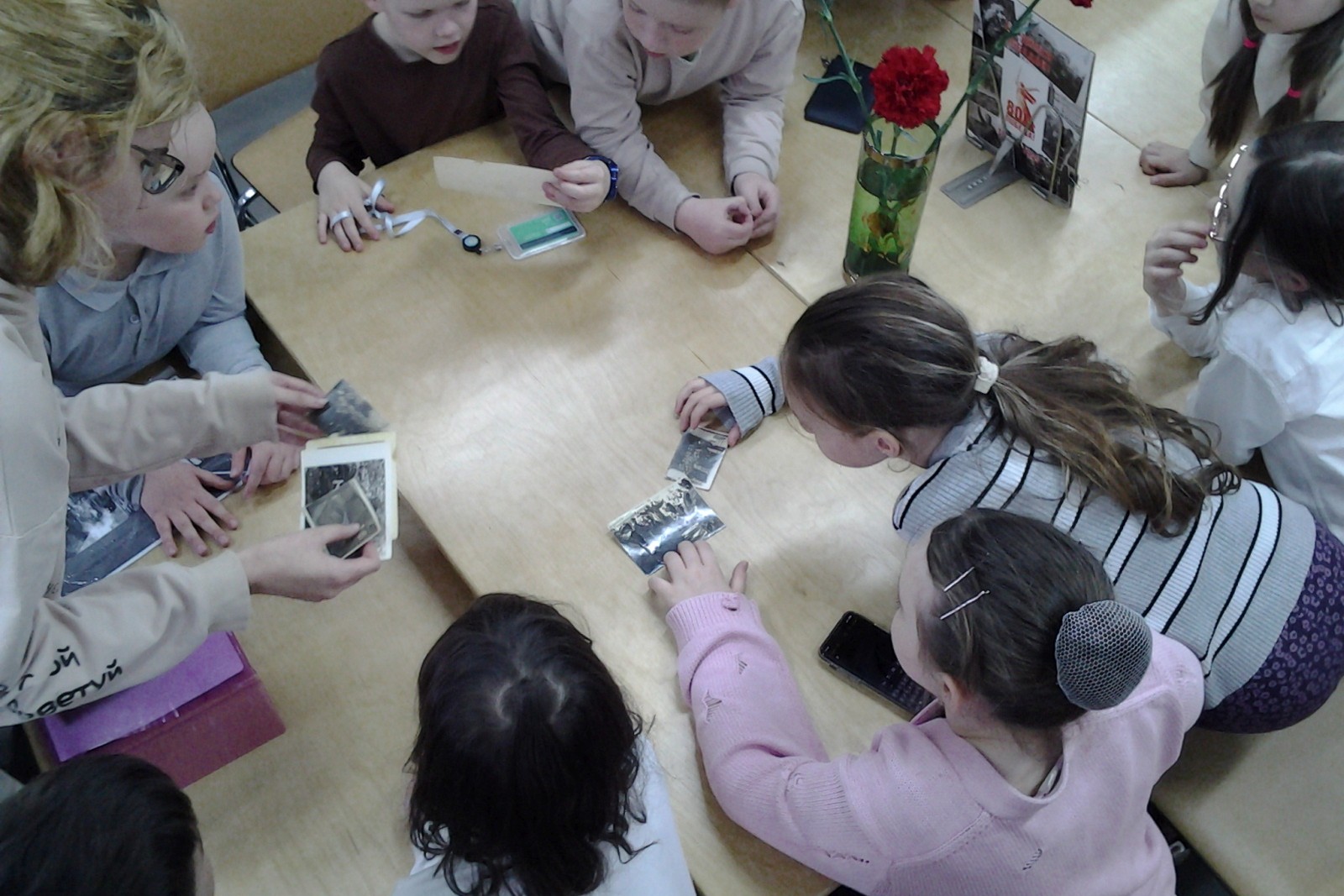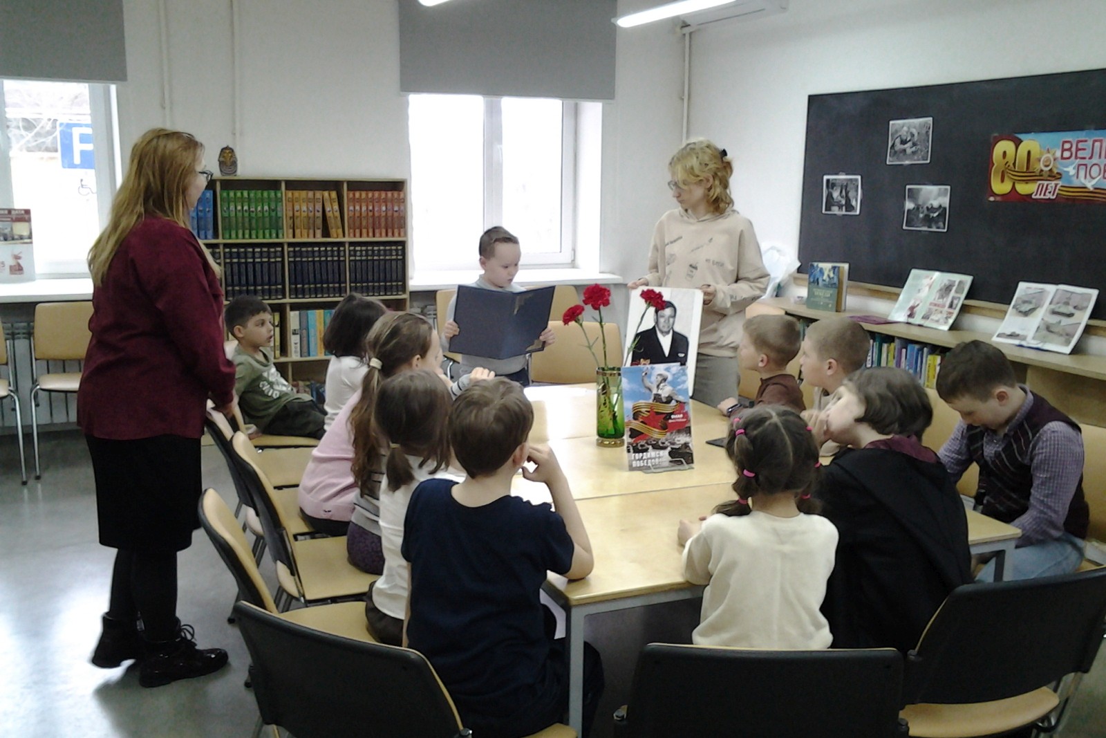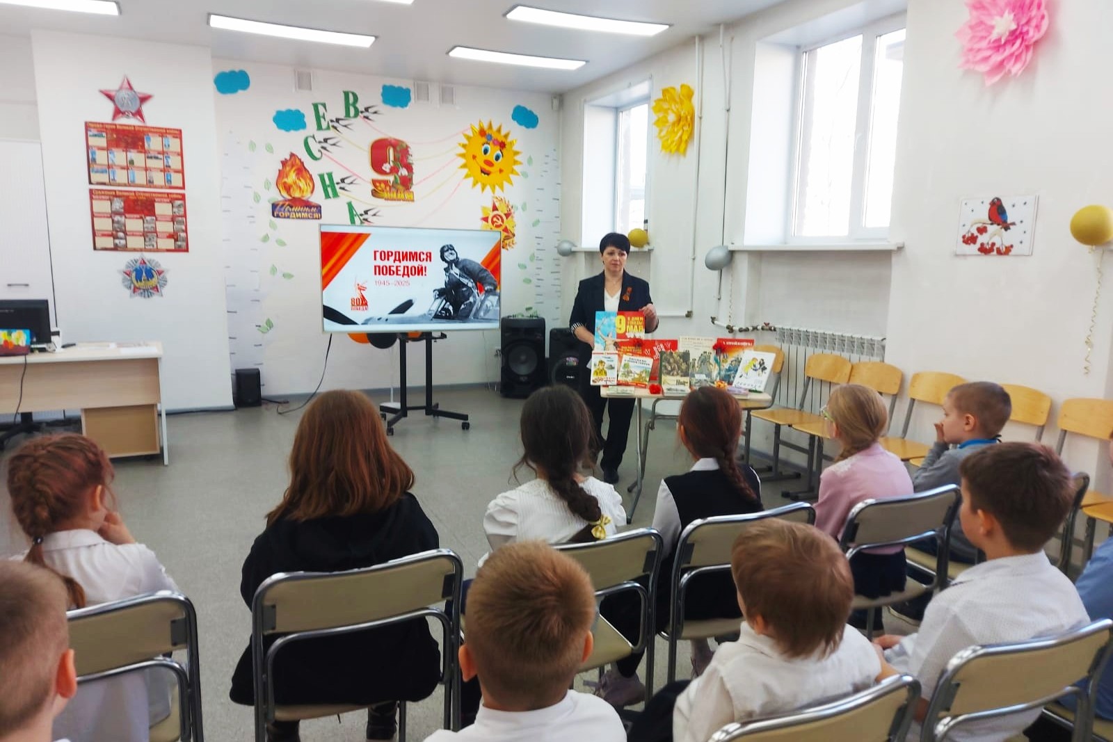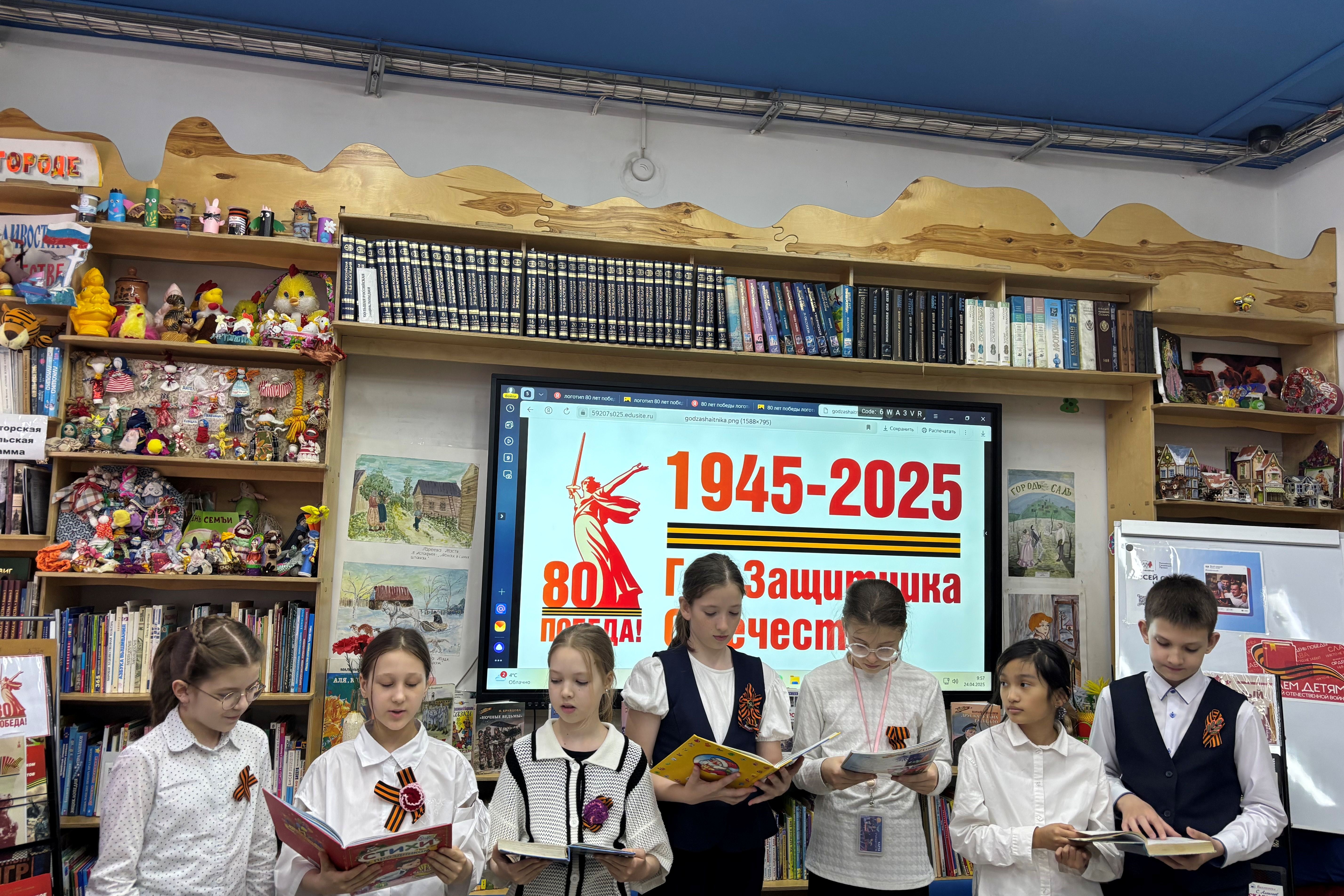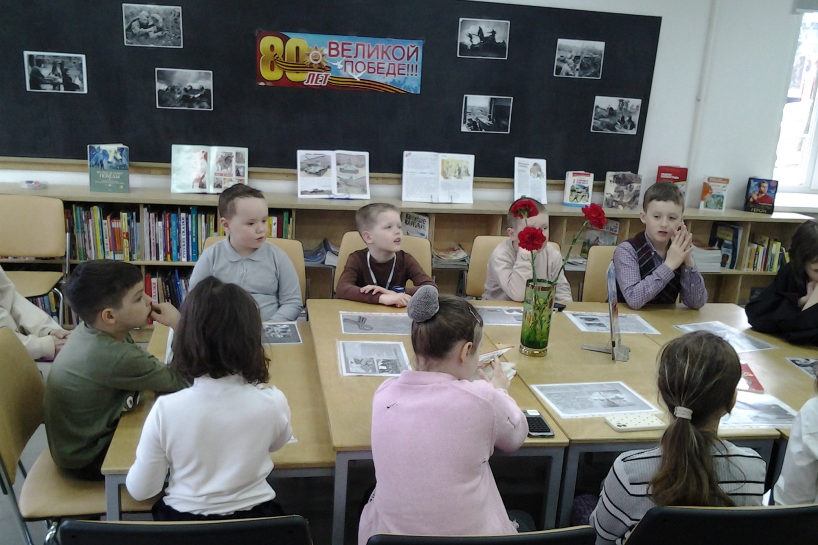 С большим интересом ребята рассматривали «Книгу памяти защитников Отечества, погибших в годы Великой Отечественной войны», ведь это книга о тех, кто сложил свою голову на полях сражений, умер от ран в госпиталях, пропал без вести. В ходе беседы детей объединяло одно: благодарность ветеранам, победившим фашизм и память об этом подвиге. Познакомились с книгами «Бессмертный полк» и книгой Константина Галева «Герои Великой Отечественной войны» о советских полководцах, вспомнили героев войны. Четвероклассники вслух читали стихи Андрея Усачева, Владимира Степанова, Ольги Высотской, Анны Ахматовой, Константина Симонова и других поэтов о минувшей войне.