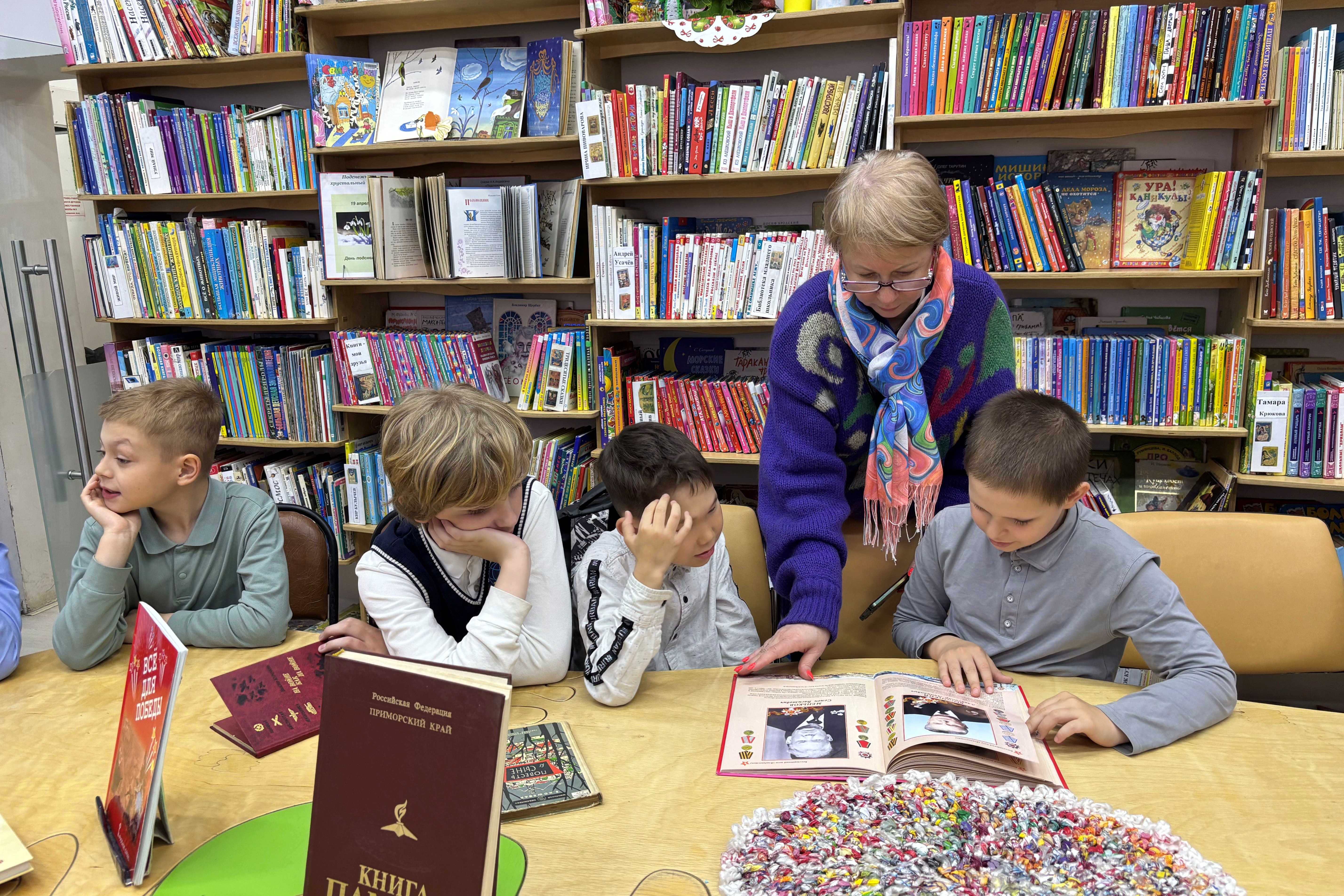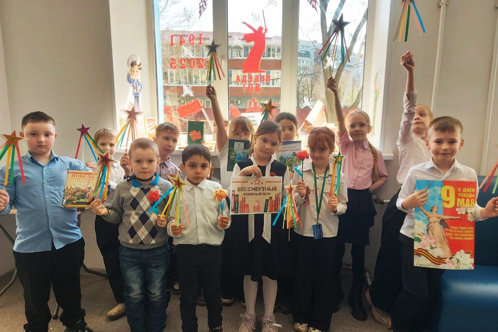 24 апреля ученики 4 «Е» класса школы № 74 в детской библиотеке № 7 (ул. Калинина, 281) приняли участие в патриотическом часе «Они приближали Победу». Дети знакомы с войной только по фильмам и книгам, о чем они и говорили. А некоторые из них рассказывали о своих прадедах, кто участвовал в боях за Родину, кто сейчас сражается на СВО.