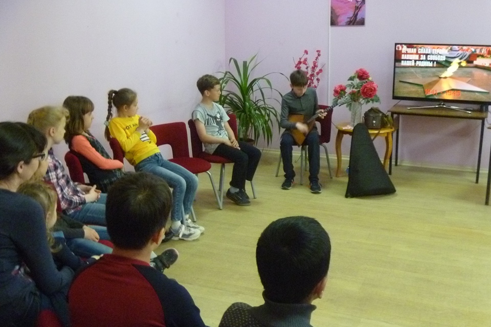 Запоминающимся гостем студии стал ученик Православной гимназии, Лев Сосновенко, 10 лет. Лев сыграл «Смуглянку» на балалайке, а ребята хором подпевали музыканту. Также Лев принес на встречу военный бинокль и противогаз. Эти «военные трофеи» мальчику подарил дедушка. Сколько радости испытали мальчишки и девчонки, примеряя противогаз, глядя в бинокль!