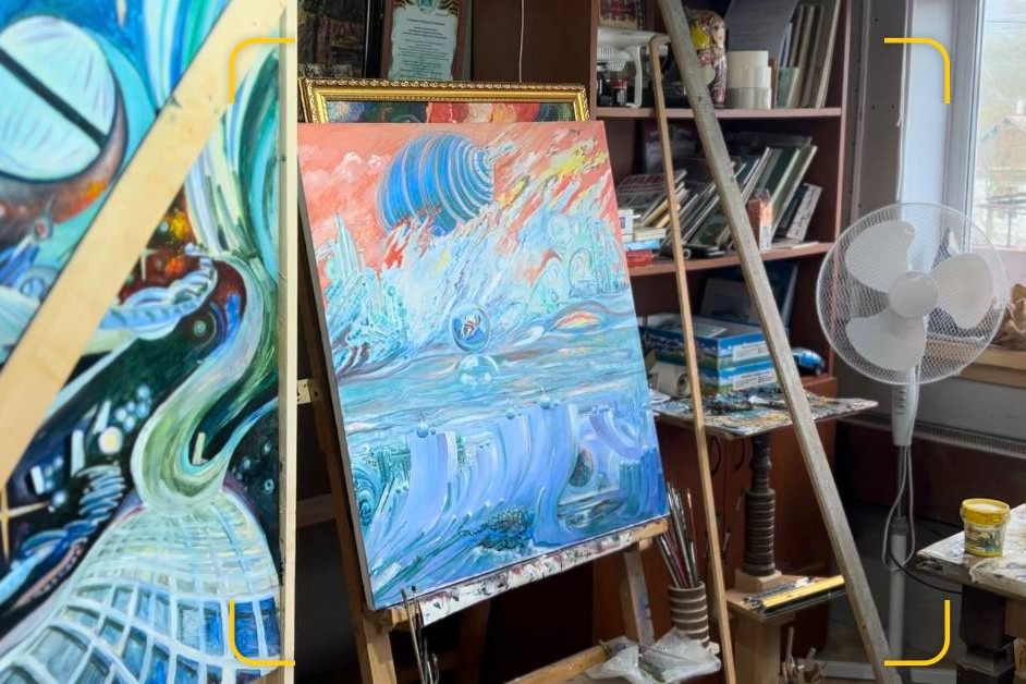 Воодушевляющей оказалась встреча с кавалеровским художником-космистом В.Н. Николайчуком. Он подробно рассказал о своём творчестве и подарил экспедиторам графические работы.