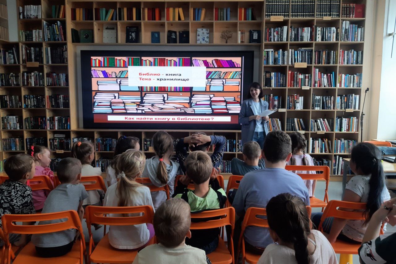 23 июня библиотека им. А.С. Пушкина (БУК) организовала для воспитанников пришкольного лагеря образовательного центра «Afina Education» познавательный час «Профессия – библиотекарь».