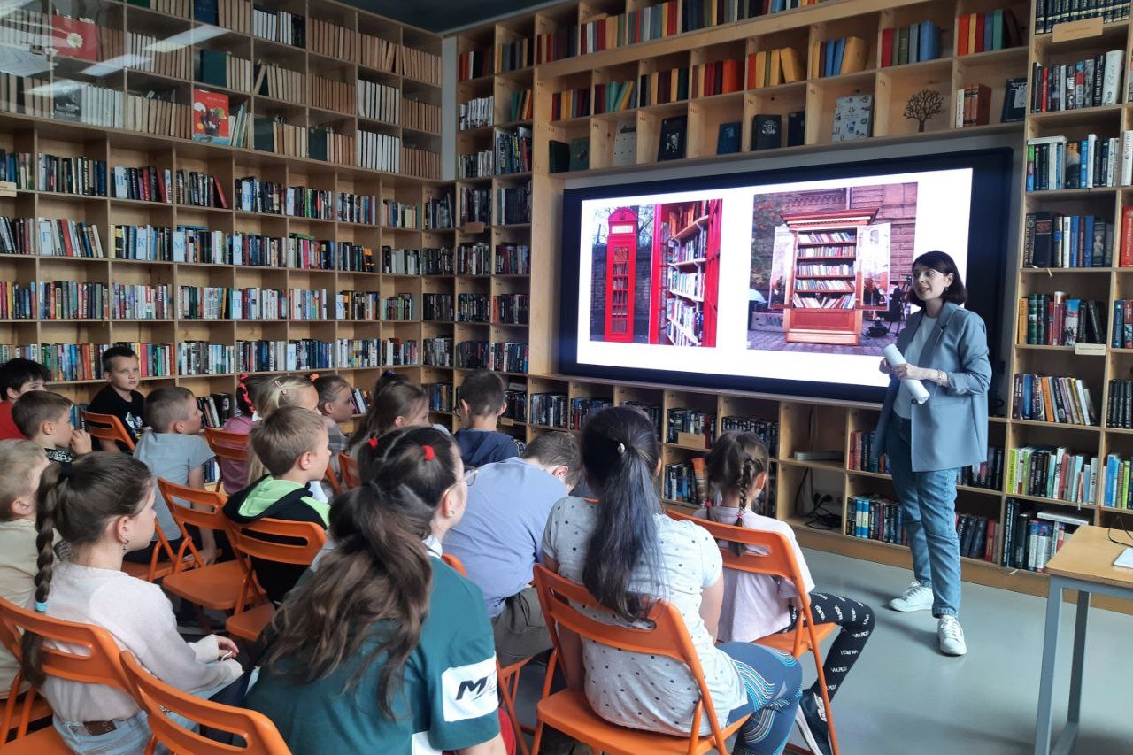 Ребята совершили интерактивное путешествие по библиотекам мира, узнали, что в штате Канзас есть библиотека, выполненная в виде огромной книжной полки, а в итальянской Перудже – ее построили в виде летающей тарелки. Обнаружили, что в Ирландии и Великобритании авторы сами платят библиотекам за то, чтобы их книги были размещены и даже то, что библиотека есть в космосе, на борту МКС.