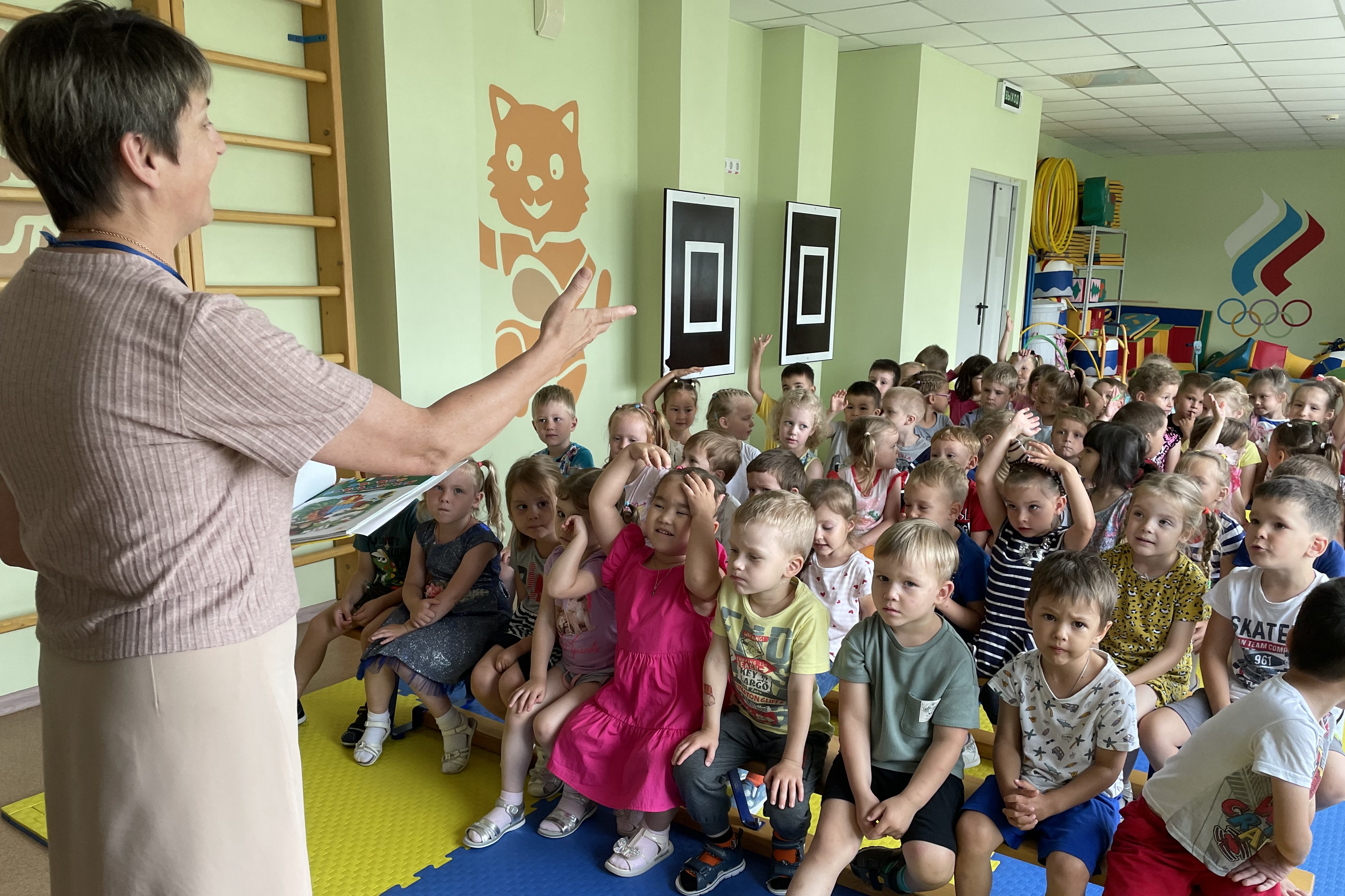Потом ребятишки с удовольствием слушали загадки из книжек и пытались их отгадать. Это были веселые загадки-обманки, загадки про зверей и птиц. Здесь им пришлось с помощью мимики и жестов показывать ответ.