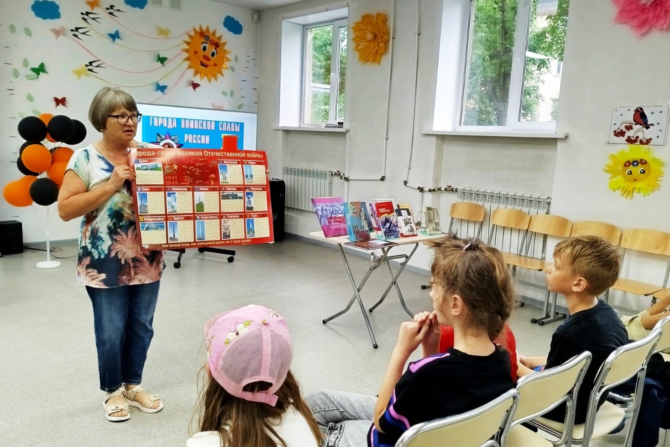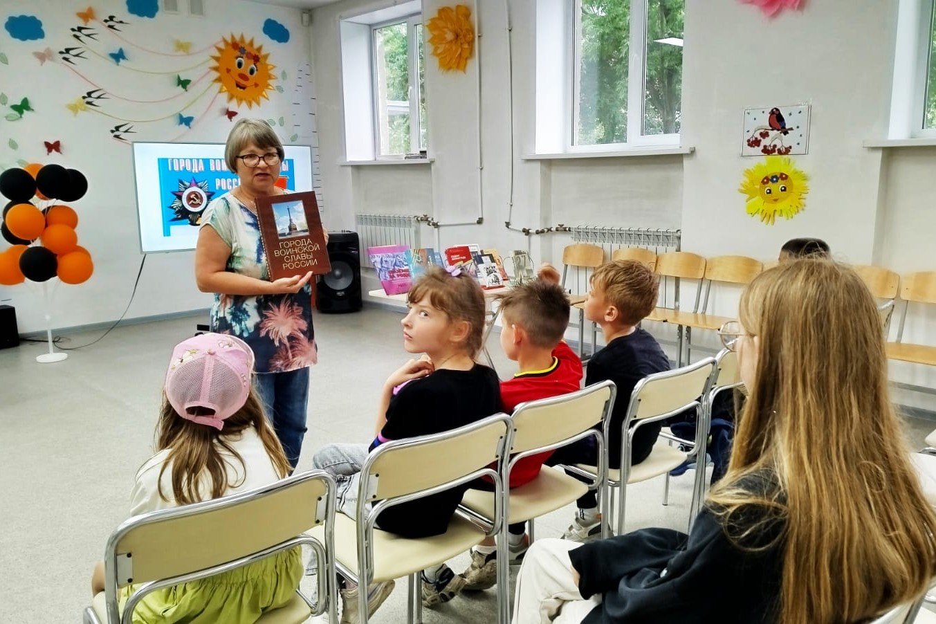 Дети узнали, что большинство городов получили его за подвиги в Великой Отечественной войне, и что в настоящее время городами воинской славы являются 47 городов Российской Федерации, среди них Белгород, Орёл, Ржев, Курск и другие. Библиотекарь рассказал школьникам, что наш город Владивосток тоже носит почетное звание «Город воинской славы», несмотря на значительную удаленность от основных фронтов Великой Отечественной, дыхание войны Владивосток ощущал постоянно, и именно решимость и преданность делу защиты Родины жителей, помогли приблизить Победу.