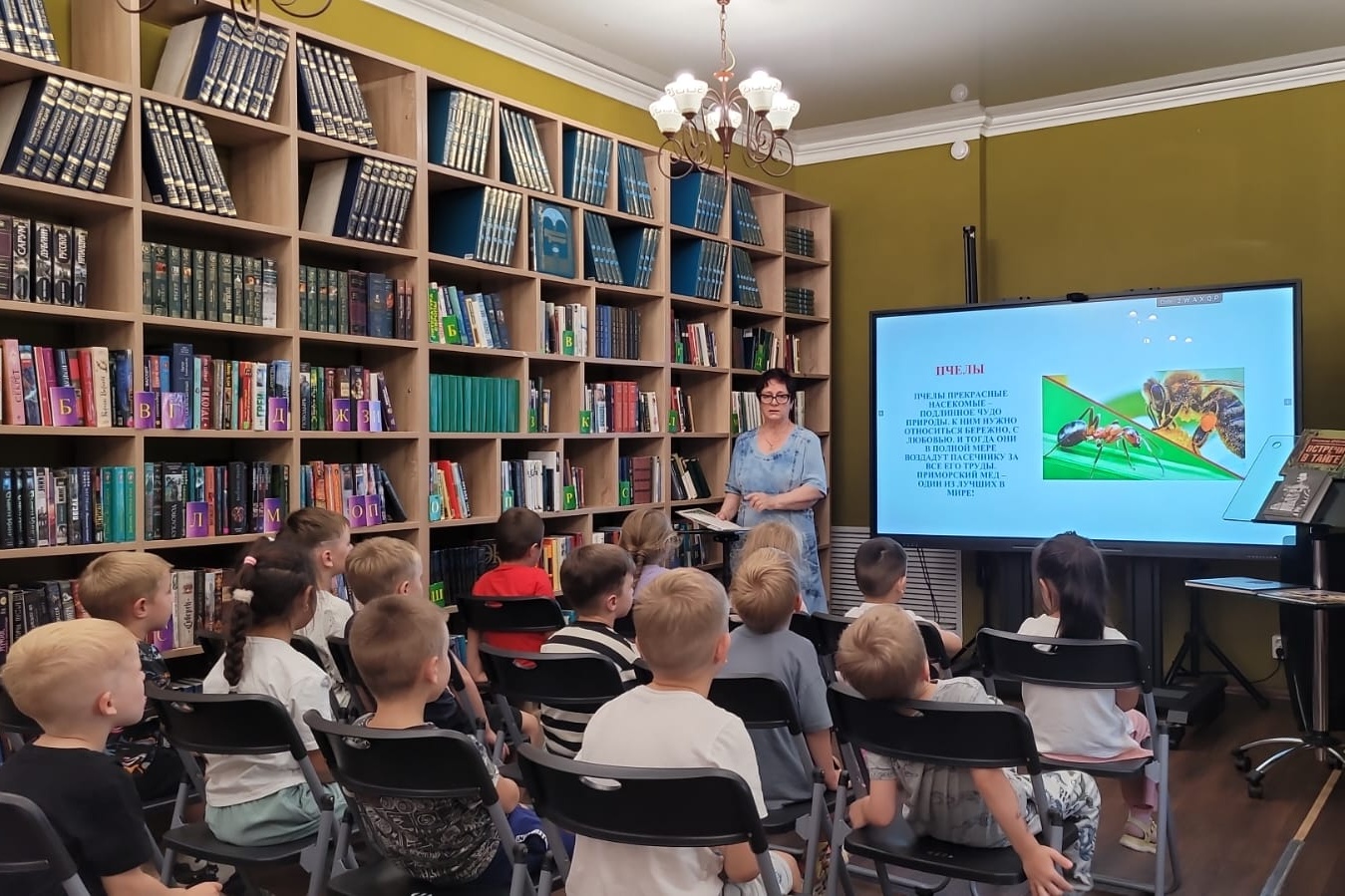 27 и 28 августа библиотека № 4 (ул. Светланская, 205) организовала для воспитанников детских садов №№ 154 и 176 чтение вслух «Мир животных», по рассказам книги «Встречи в тайге». Чтение отрывков сопровождалось слайдами с кратким описанием животных и птиц. Истории об уссурийской пантере, медведе, филине, белохвостом орлане, птичьем базаре привели детей в восторг. О многих животных дети услышали впервые, некоторых узнали и поделились своими познаниями. Дети с удовольствием отправились в путешествие по страницам книги «Встречи в тайге», эмоционально реагировали на захватывающие истории.