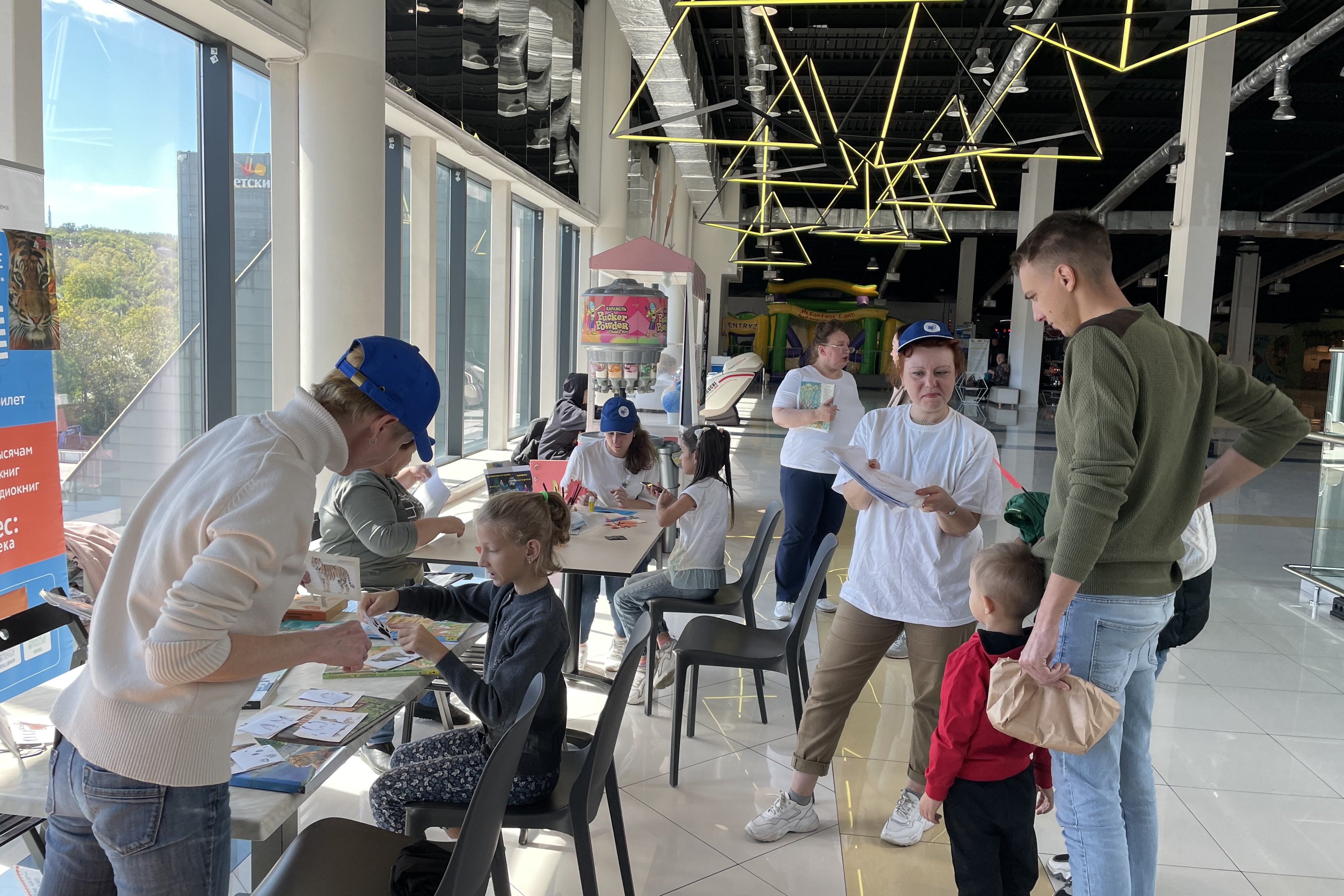 24 сентября в ТРК «Седанка Сити» продолжились литературные игры на Открытой библиотечной площадке МБУК «ВЦБС». Прекрасная погода в этот день просто располагала к общению, творчеству и чтению. А темами литературных игр была наша красивая осень, наше богатство — тайга и ее обитатели.