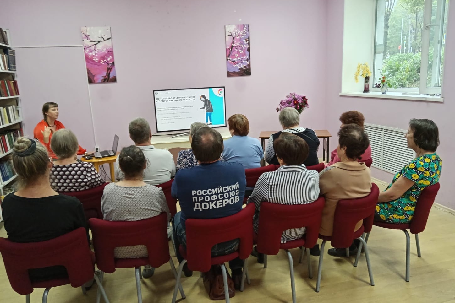 В рамках Всероссийской просветительской эстафеты, VI этап, в библиотеке №13 (ул. Русская, 78) проведена беседа для старшего поколения читателей по теме финансовой безопасности. Особое внимание слушателей обратили на то, как не стать жертвами мошенничества, и как в этом может помочь финансовая грамотность.