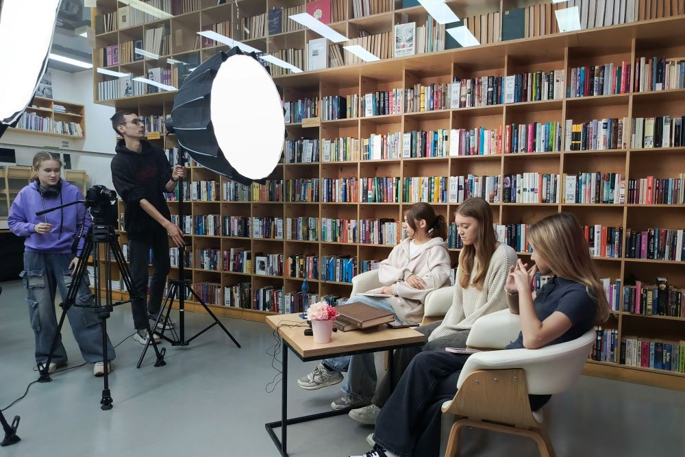 23 октября молодежная библиотека БУК вновь превратилась в настоящий медиацентр. Вместо привычной тишины здесь царила творческая атмосфера съемок: молодежная команда, ученики Школы креативных индустрий Филиала РГИСИ во Владивостоке, реализовывала видеопроект, приуроченный к 125-летию со дня рождения выдающегося языковеда Сергея Ивановича Ожегова.