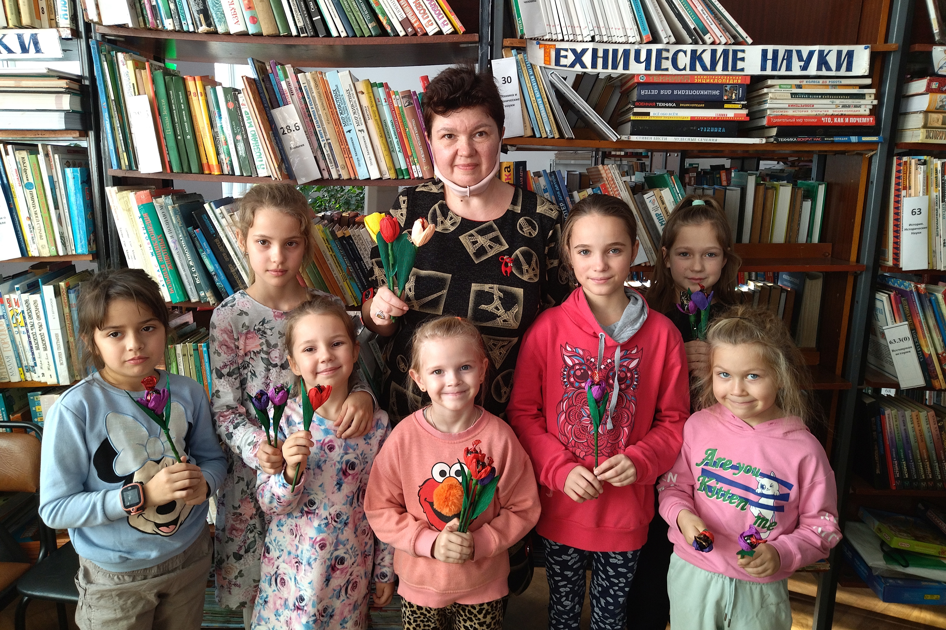 Мастер-класс ко Дню матери пришелся на праздник. Девочки ввалились в библиотеку дружною толпой и посыпались вопросы: а что мы будем делать? Девочки уже знали, что на мастер-классе будет цветок с сюрпризом, но какой?