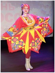 Особое место среди работ занимает семиклиновая юбка, она олицетворят семь дней масленичной недели, где каждый клин имеет свой центровой рисунок, обозначая один из дней (встреча, заигрыш, лакомки, разгул, тёщины вечерки, и т.д.) Юбка не только скроена солнышком, но и соединив жёлтые лучи можно увидеть солнышко. Этот костюм прошёл не один десяток конкурсов как театральных, так и танцевальных, являясь украшением номера.