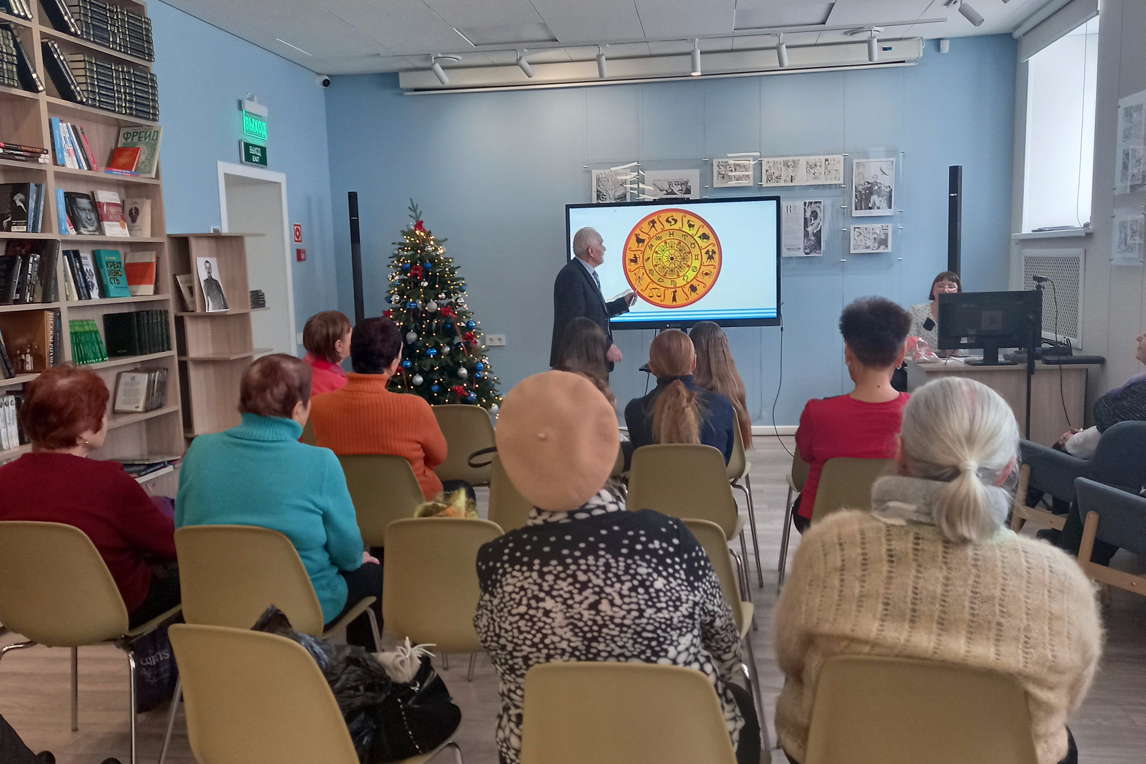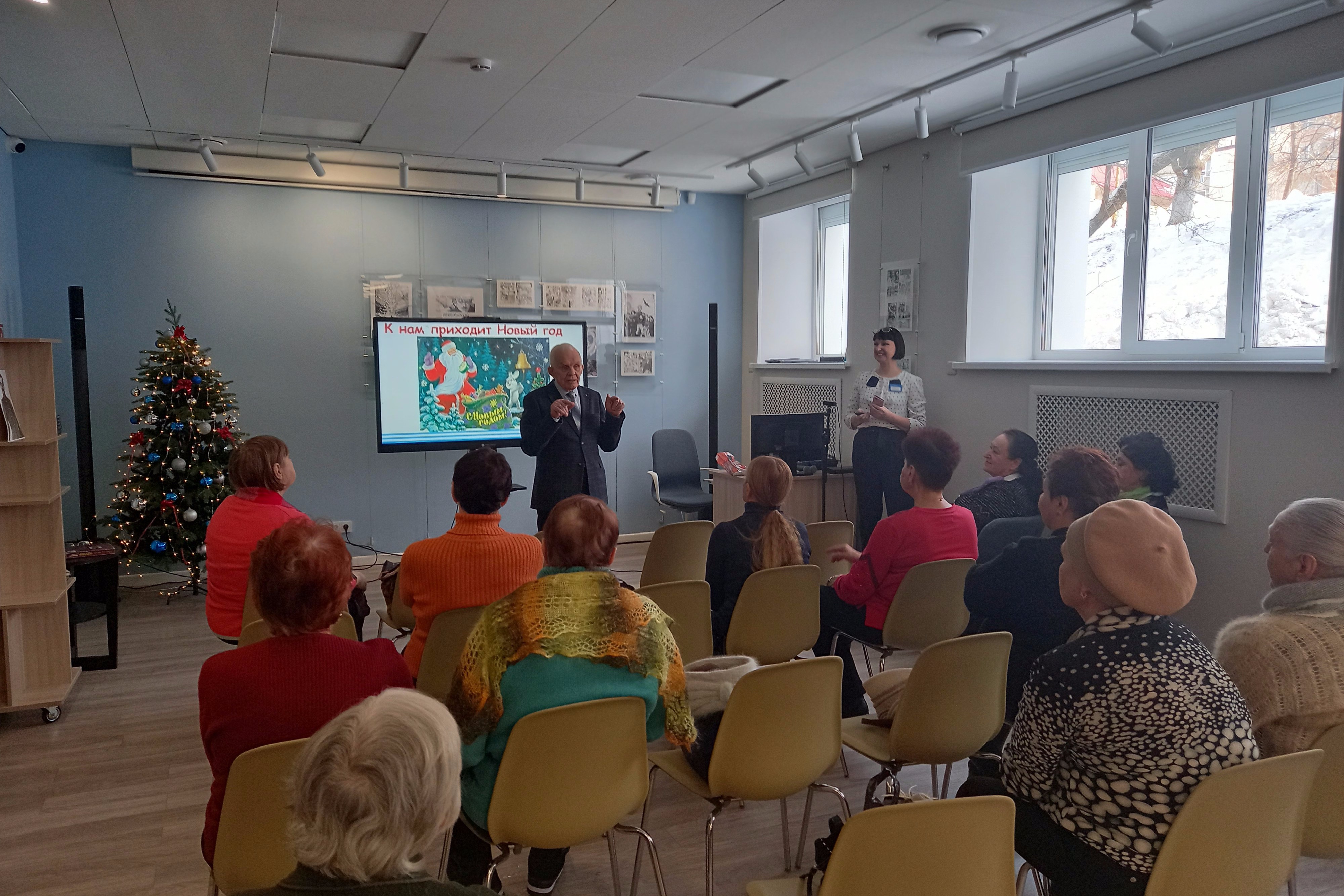 28 декабря, в канун Нового года, в Центральной библиотеке им. Чехова, состоялась встреча с Щербатюком Виктором Павловичем, членом Общества изучения Амурского края, преподавателем Дальрыбвтуза. Лекция-беседа получилась яркой, познавательной и насыщенной. Виктор Павлович разъяснил, почему на Руси Новый год встречали в сентябре и почему с 1700-го года мы делаем это 1 января, следуя указу Петра I — украшать дома еловыми ветвями, отмечать фейерверками и шумными торжествами.