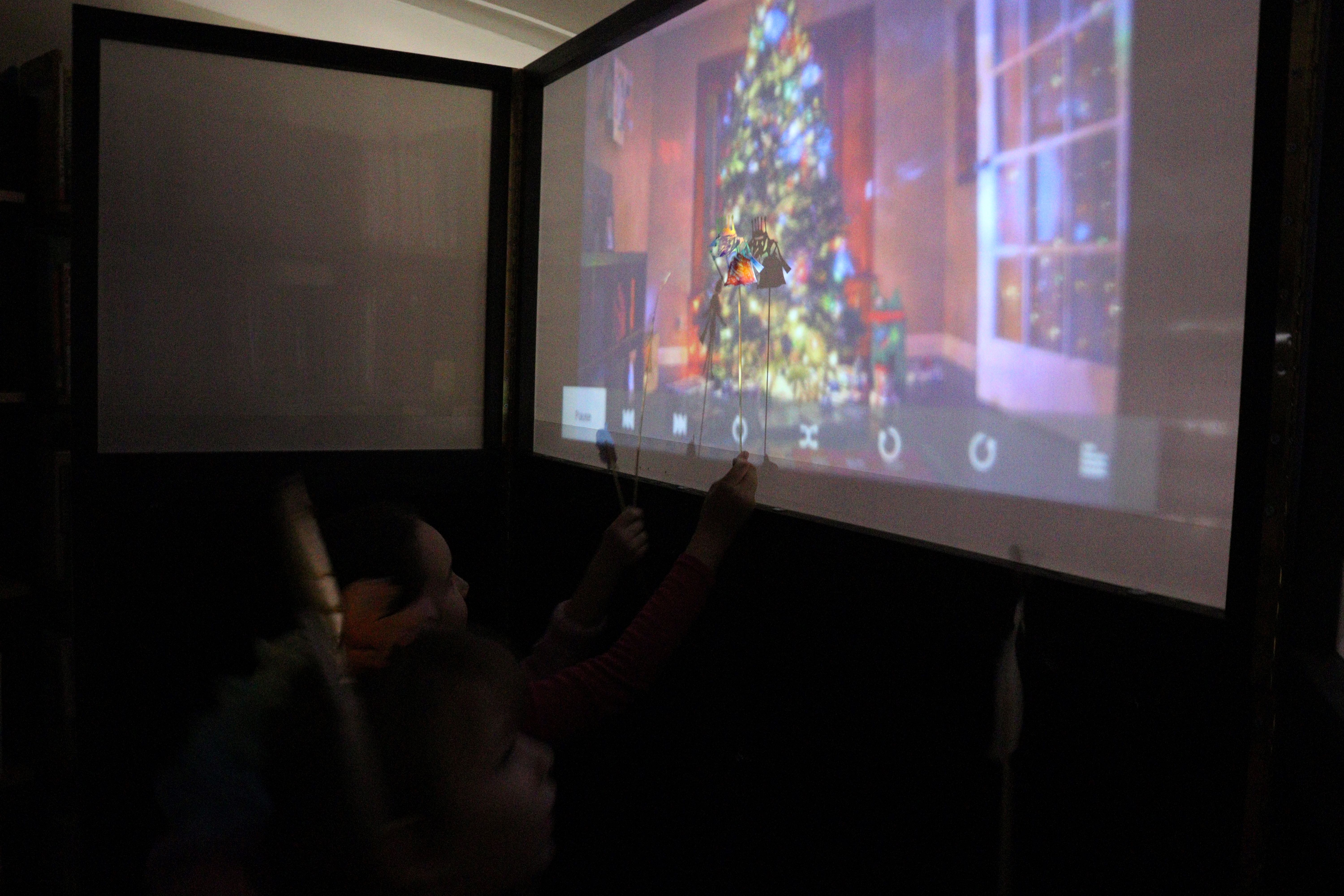 В начале декабря было решено поставить добрую зимнюю сказку о Дедушке Морозе и его приключениях. После того как ребята прослушали чудесную историю, началась подготовка к представлению в библиотечном театре теней. Поскольку сказочное действие происходит в деревне Дедов Морозов и в лесу, ребятам предложили создать зимние декорации, а после выбрать понравившуюся роль и с помощью заготовки сделать свою куклу-марионетку. Особенный интерес у юных читателей вызвала «волшебная доска», на которой, с помощью света – небольших фонариков, можно рисовать различные силуэты и узоры. И это лишь часть волшебства театра теней. После репетиции актёров наши зрители оказались в зимнем сказочном лесу, что навеивает сказочное тепло и новогоднее настроение.