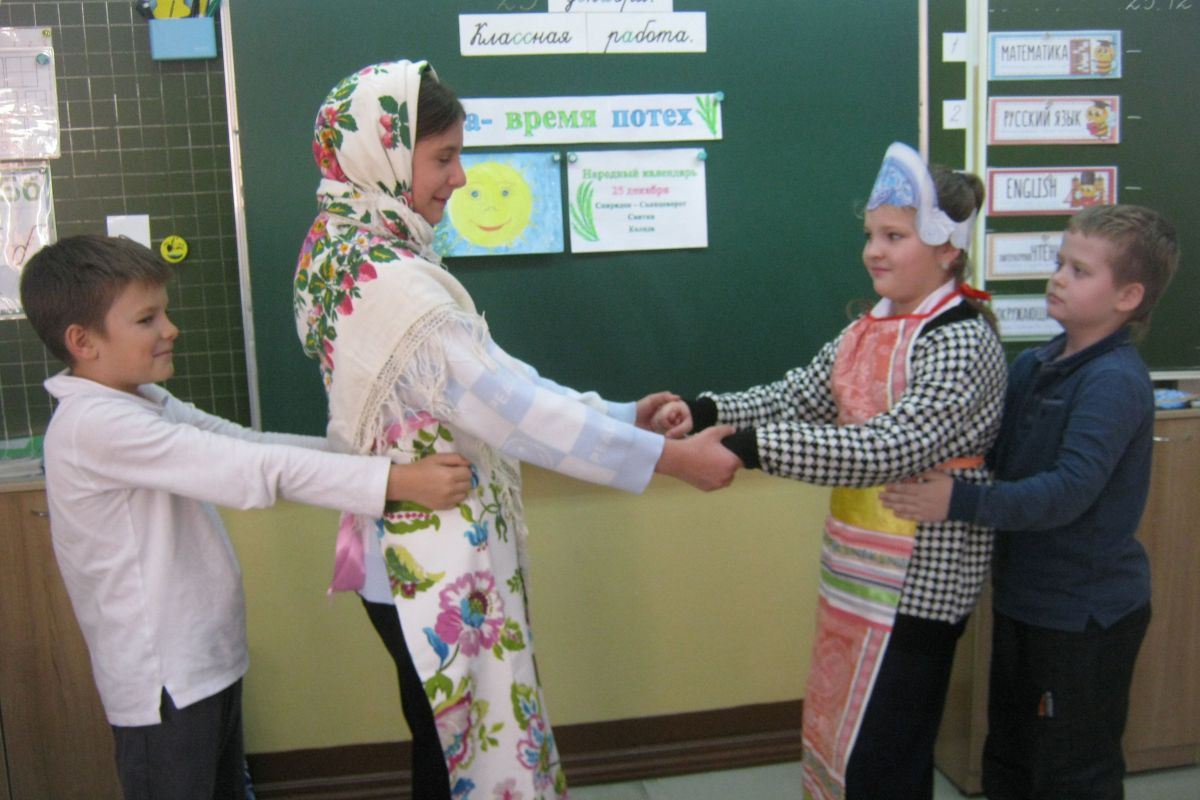 Третьеклассники с удовольствием погрузились в те давние дни, которые не только не забылись, но и время от времени напоминают о себе и сегодня. Карнавальные маски, сверкающие огоньки в окнах, подарки в виде сладостей – вот те самые отголоски древности, о которых люди даже не догадываются. Даже русские народные сказки «Морозко», «Старик Годовик», «Снегурочка» рассказывают на своих страницах о жизни наших предков, умевших принимать волшебство, как подарок природы. Дети с радостью стали участниками действа, принарядились, поиграли в игры предков, отгадали не самые легкие загадки и сумели ответить на все вопросы викторины.