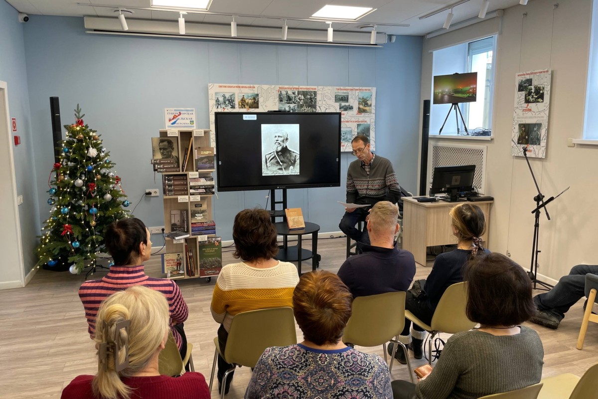26 декабря в модельной Центральной библиотеке им. А. Чехова состоялась презентация книги «Записки офицера Генштаба» в рамках краевого проекта «Как пройти в библиотеку?». О самой книге и о жизни её автора рассказал Сергей Корнилов – историк, краевед и член ОИАК.