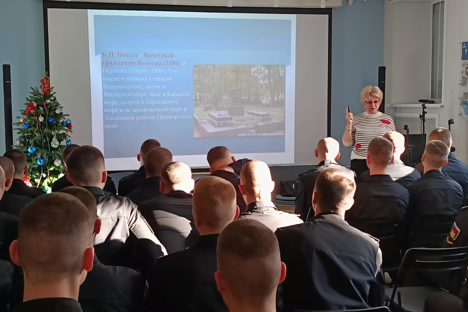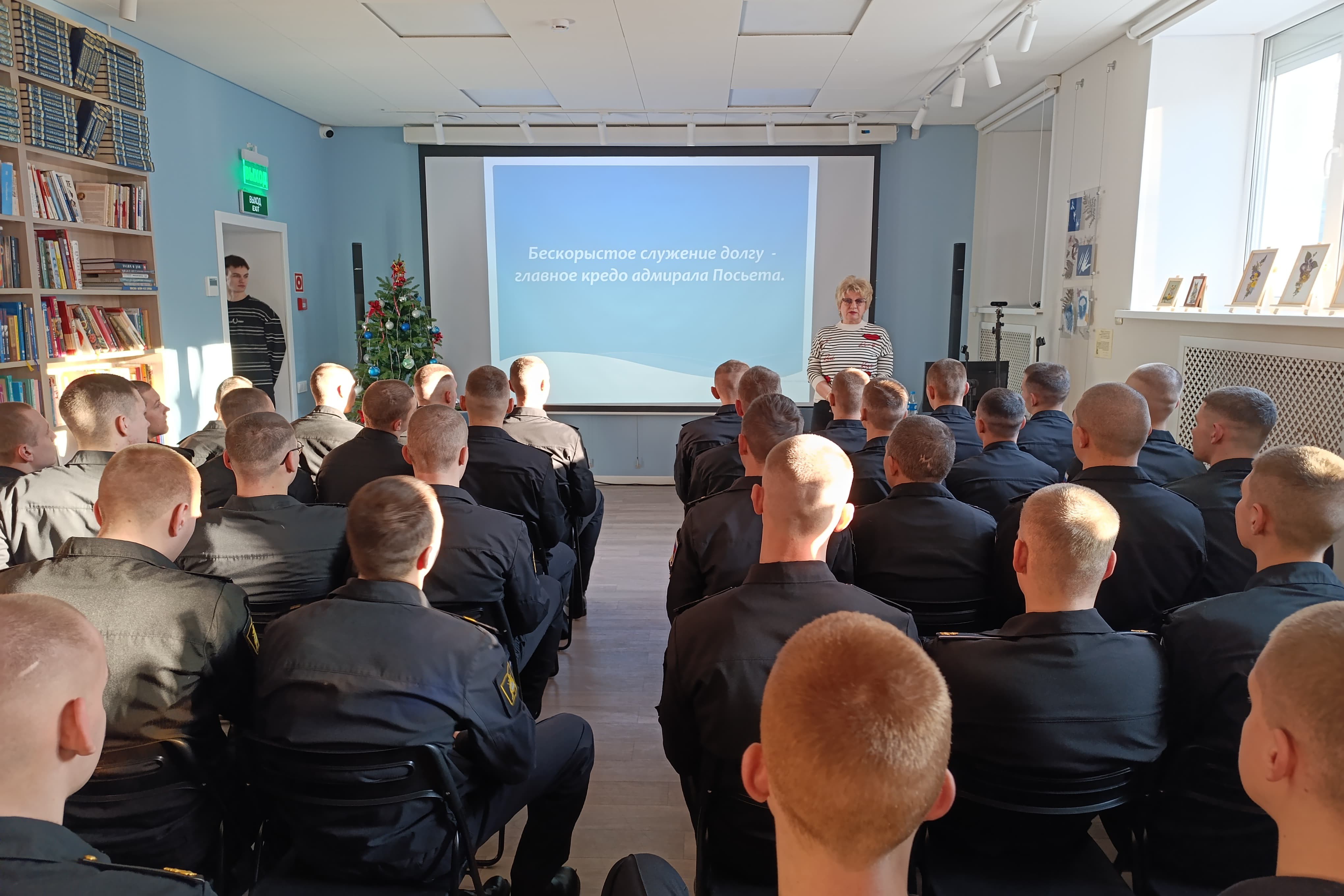В Центральной библиотеке им. А. Чехова, модернизированной в рамках национального проекта «Культура», состоялась 26 января лекция, посвященная Константину Николаевичу Посьету. Лекцию провела Луговская Елена Витальевна, экскурсовод, член секции экскурсоведения и краеведения Общества изучения Амурского края. На этот раз слушателями лекции были курсанты ТОВВМУ им. С.О. Макарова.