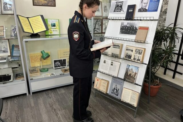 Курсанты с интересом рассматривали и подготовленную тематическую выставку, на которой были представлены редкие биографические издания, сборники документов и военно-исторические журналы, посвященные периоду Гражданской войны и становления Красной Армии.