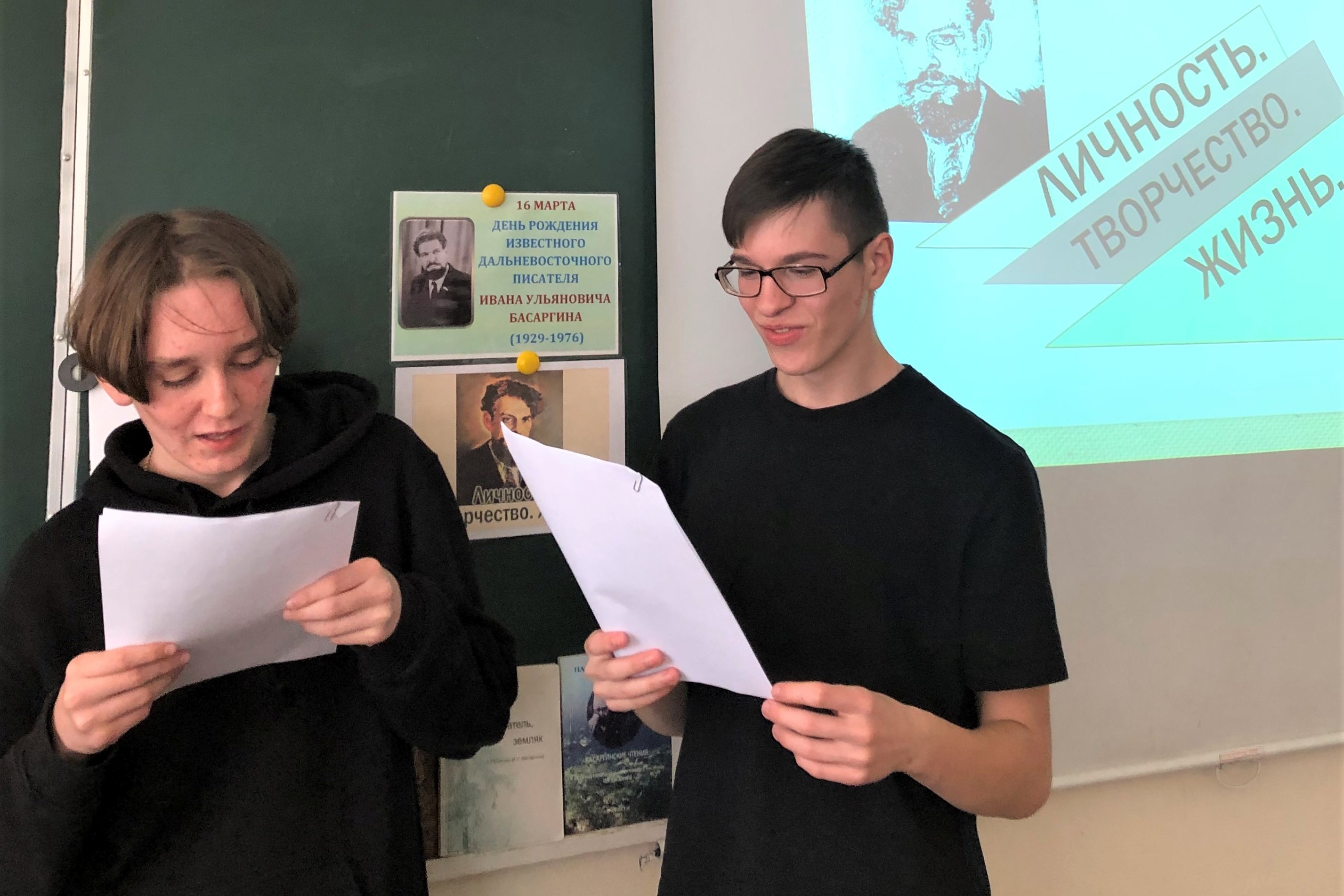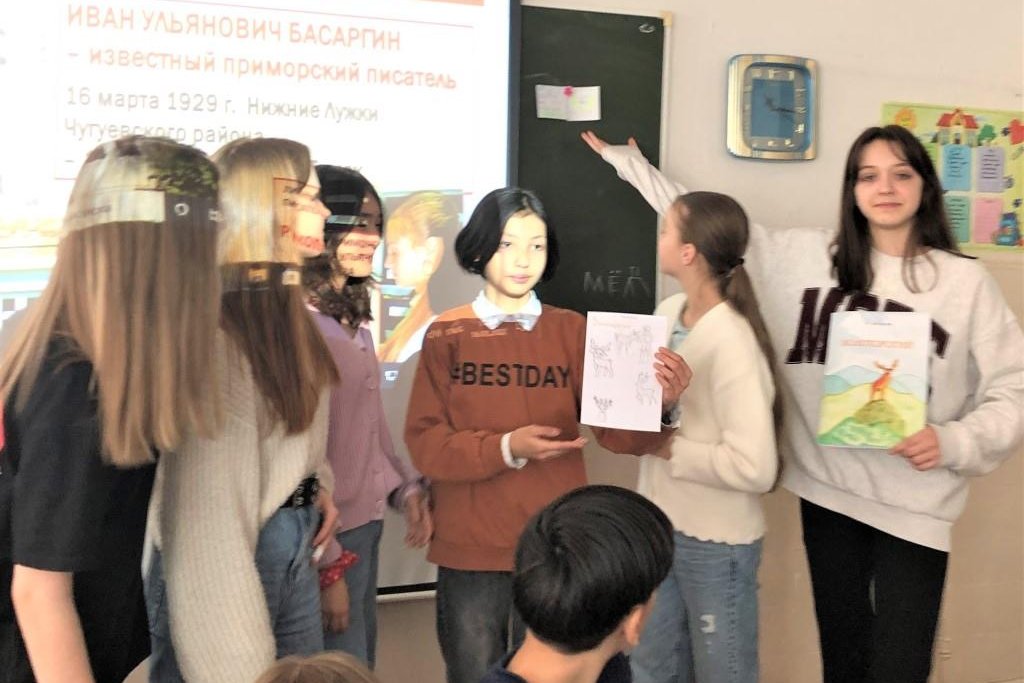Старшеклассники, которые уже несколько лет занимаются по программе «Басаргинская строка», подготовили сообщения о творчестве писателя, его сложном жизненном пути, отметили, что некоторые факты биографии встречаются на страницах его рассказов и новелл. Обратили внимание на то, что язык Басаргина редкий, своеобразный, достался ему в наследие от предков – потомственных тайгарей, отличается авторской индивидуальностью, индивидуальным стилем. И.У. Басаргин родился в маленьком таежном селении, и картины «милой таежной родины» дороже и ближе которой для него не было, он рисует во многих произведениях. Крупные произведения автора (романы «В горах Тигровых», «Дикие пчелы», «Распутье») повествуют о жизни нескольких прошедших поколений; повести, рассказы и очерки (например, «Репортаж из тайги», «Акимыч – таежный человек») – тревожат души читателей, передают человеческую, гражданскую боль за тайгу, за уничтожение ее человеком.