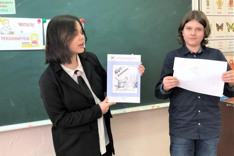 Ребята закрепляли навык работы с текстом, учились воспринимать на слух прочитанное, выполнили словарную работу и творческие задания: разгадывали кроссворды, чайнворд, отвечали на занимательные вопросы, познакомились с иллюстрациями школьников к рассказам писателя.