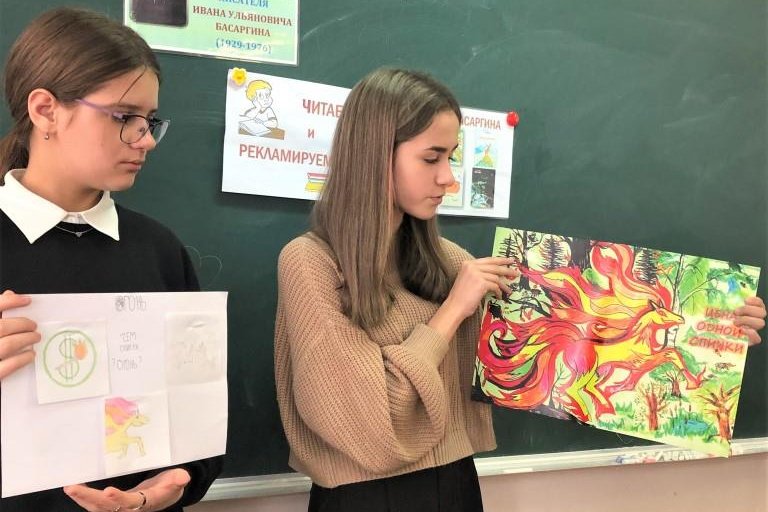 Шестиклассники читали и рекламировали книги рассказов И.У. Басаргина. Каждый класс делился на шесть команд, и каждая команда должна была придумать, сделать рекламу книжки с коротким рассказом писателя (рассказы были одинаковыми по объему), а затем в течение двух-трех минут представить ее классу. В заключение занятия отметили особенности языка самобытного писателя И.У. Басаргина – автора этих книжек. Использование нестандартных форм проведения занятий способствует развитию интереса к творчеству писателя-земляка, повышению уровня мотивации к чтению.