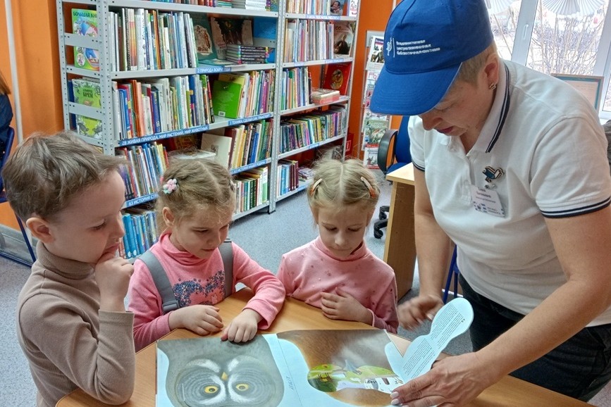 28 марта в библиотеке № 20 побывали воспитанники старшей группы ФГБДОУ «Центр развития ребенка – Детский сад № 188». Литературный праздник «Чудеса на стеллажах» начался с экскурсии по библиотеке (ведь дошколята побывали здесь впервые) и с обзора книжной выставки «Любимые детские книги». Красочная презентация – викторина поведала детворе об истории праздника «Книжкины именины», о писателях и поэтах, стоявших у истоков этого замечательного праздника всех любителей книг и чтения. Слайды викторины помогли вспомнить русские народные сказки, произведения Агни Барто, Сергея Михалкова, Корнея Чуковского. Краеведческие чтения «О малой родине моей» продолжили встречу. Библиотекари познакомили детей и воспитателей с интересными изданиями: книгой Формозова А.Н. «Спутник следопыта», изданной в 1943 году, и книгой В. К. Арсеньева «Встречи в тайге», переизданной и оснащенной дополненной реальностью. Дети смотрели на иллюстрации и удивлялись — звери и птицы оживали прямо на глазах.